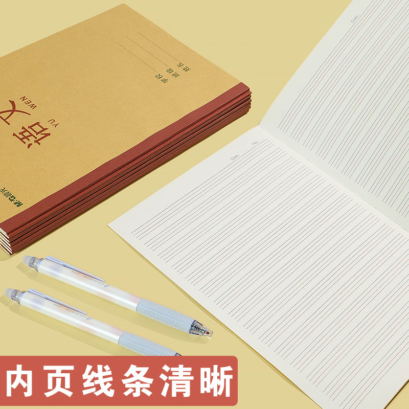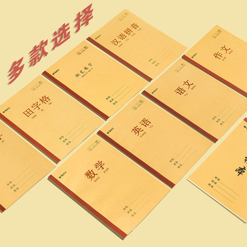 晨光牛皮纸作业本练习本小学生初中生加厚方格本子语文数学英语田