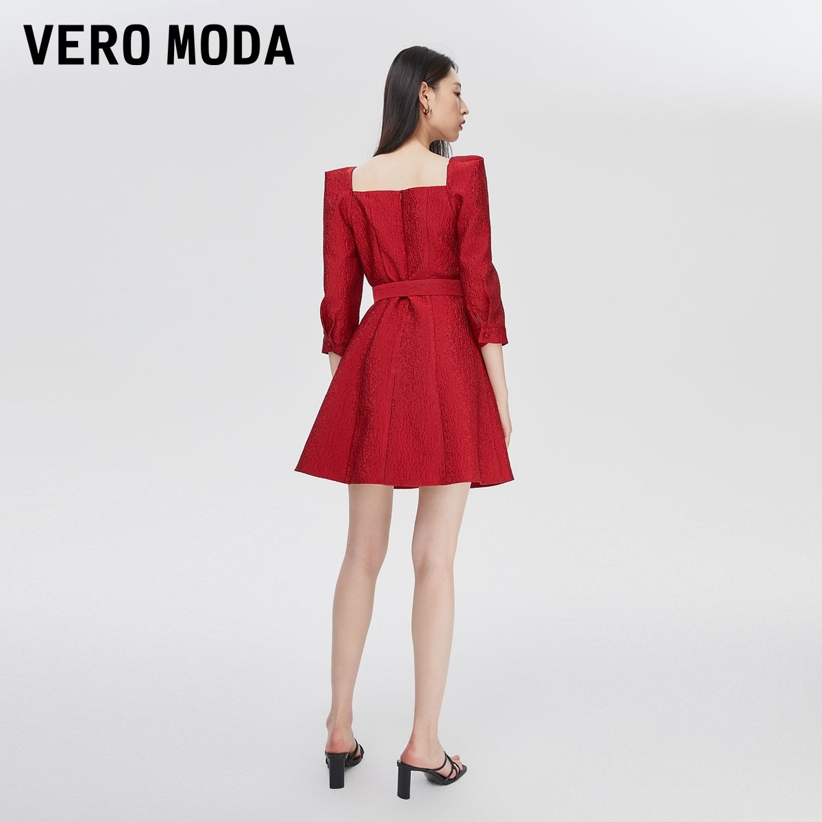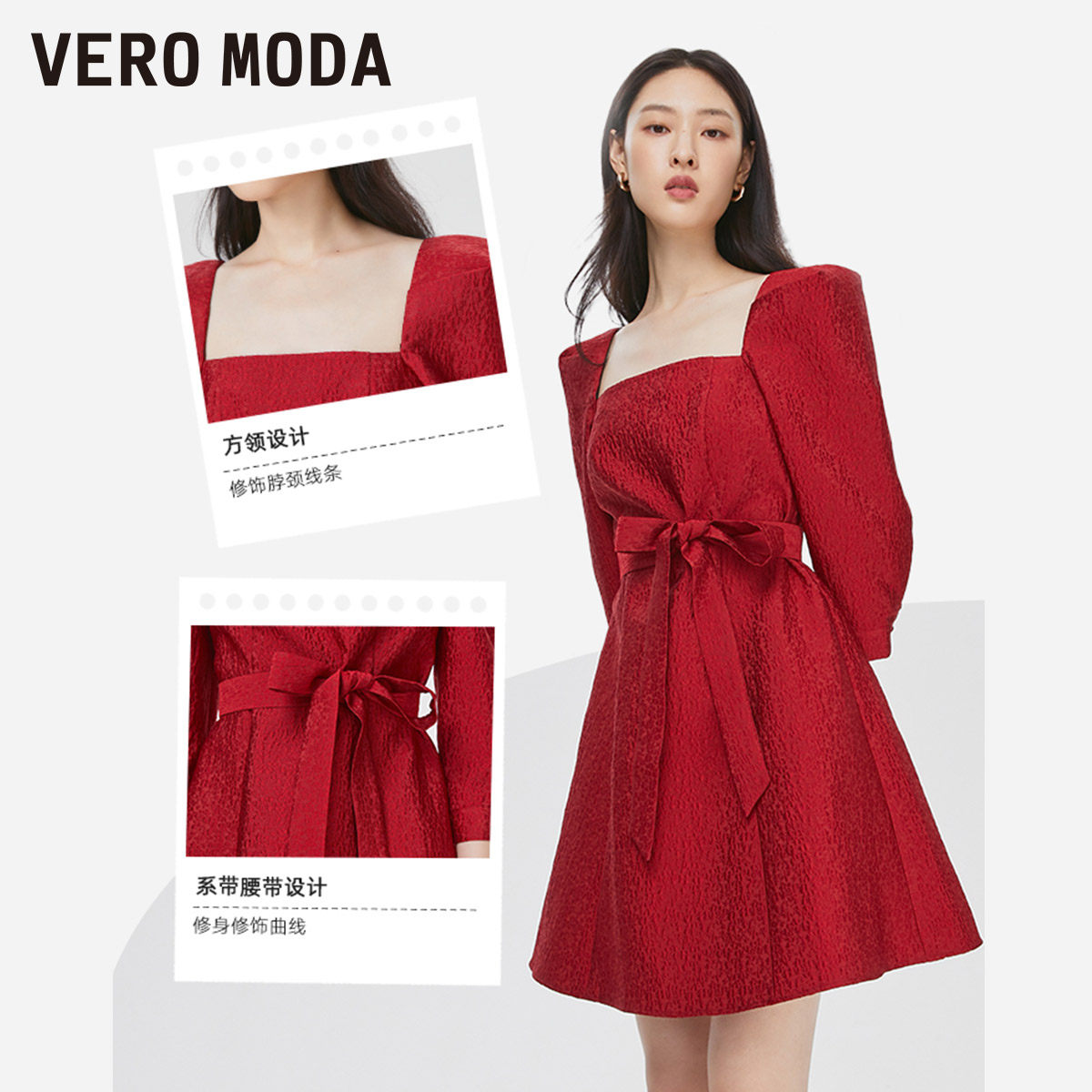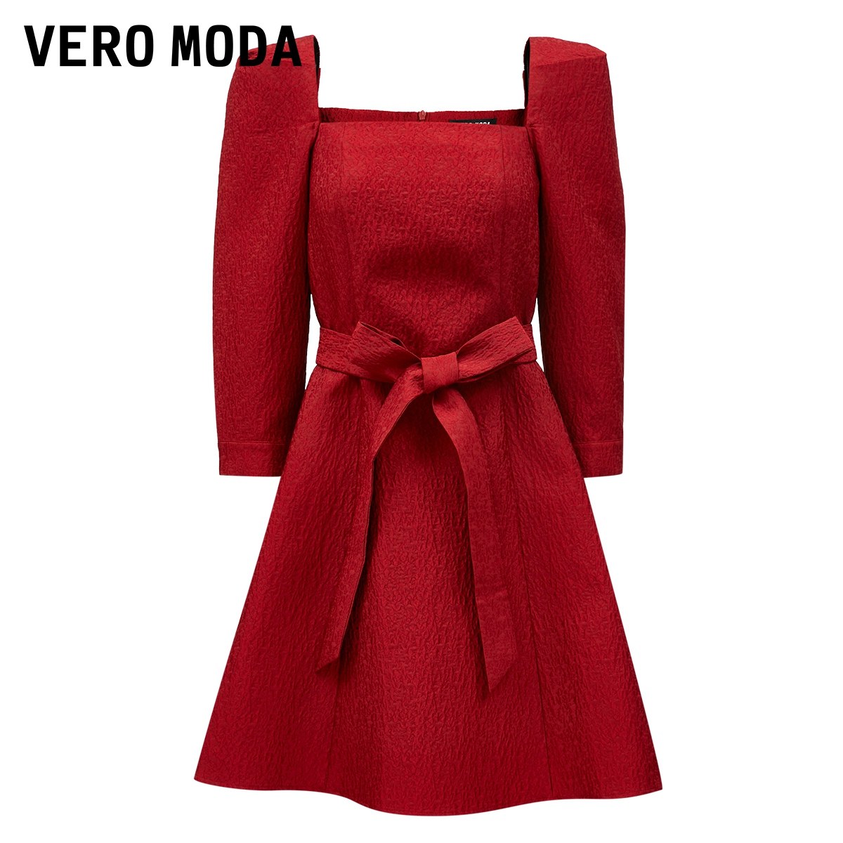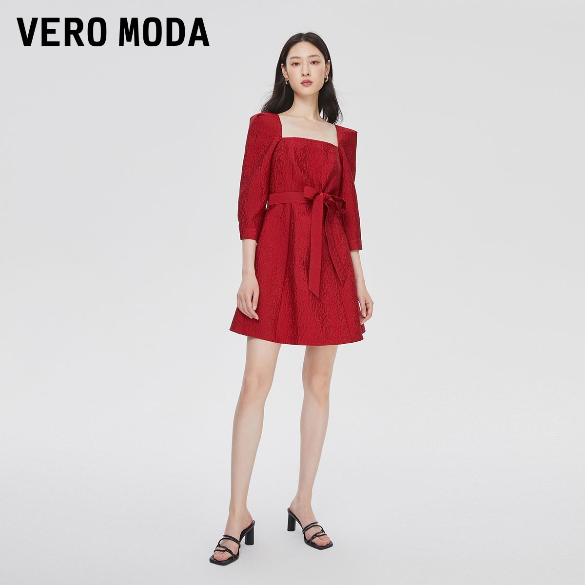 Vero Moda奥莱连衣裙秋季新款优雅方领个性收腰公主裙泡泡袖A摆