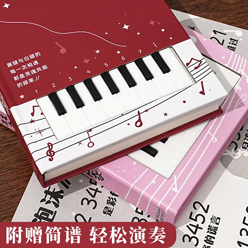 音乐机关本封面可弹奏钢琴键笔记本子高颜值超好看的本子小学生五线谱乐理简谱乐谱本文艺手账本创意女孩礼物