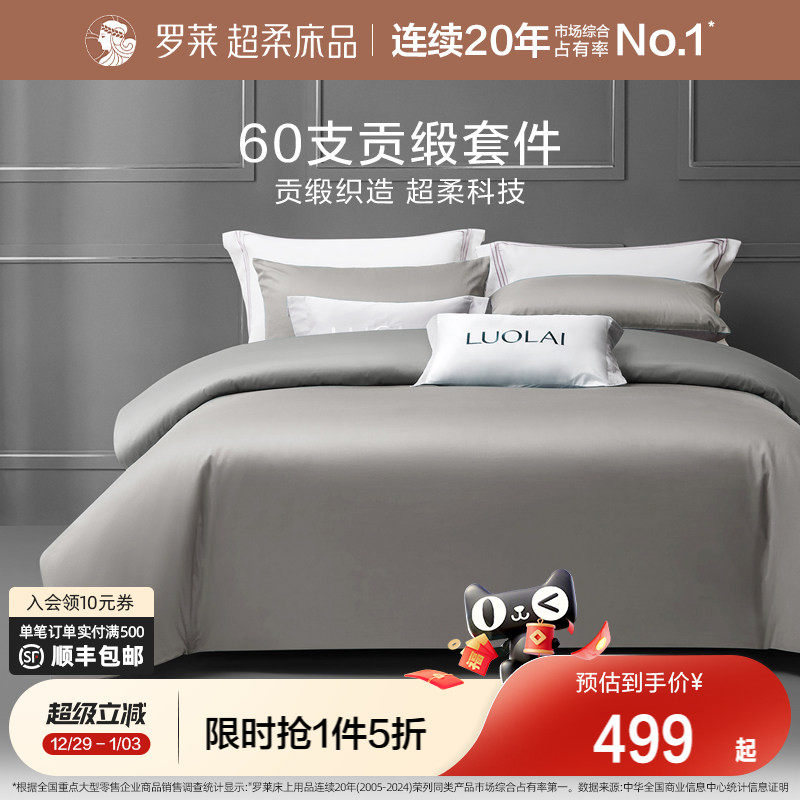 罗莱家纺官方旗舰店床上用品全棉纯棉纯棉套件床单被套被罩四件套