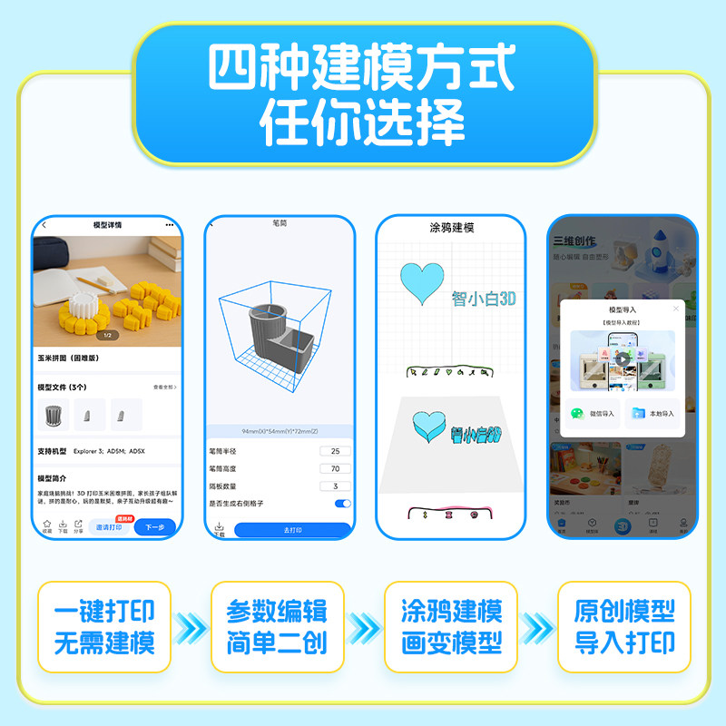 【儿童礼物优选】智小白3D打印机Explorer3儿童家用小型桌面FDM全自动调平高速高精度立体手办模型玩具diy