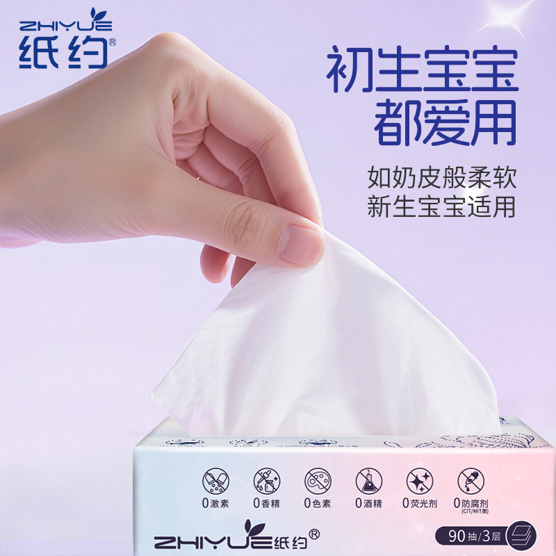 丝飘抽纸新生婴儿乳霜保湿纸宝宝可擦手面巾纸巾家用实惠装柔纸巾