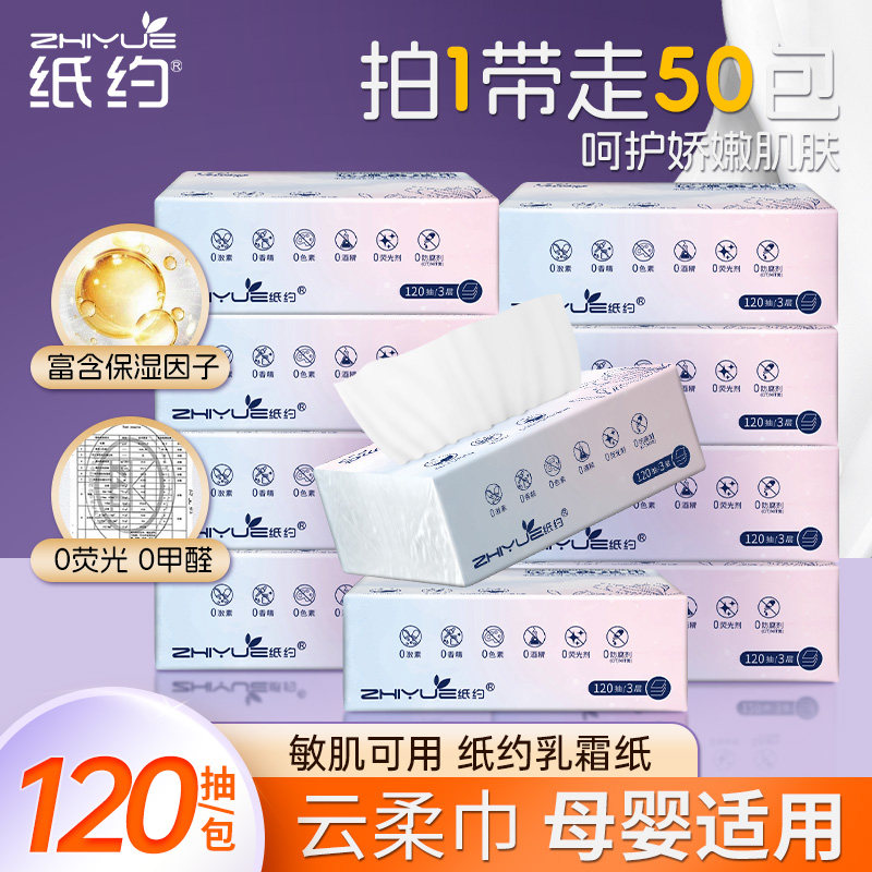 纸约云柔巾乳霜纸母婴超柔软保湿纸便携抽纸手帕面巾纸120抽50包