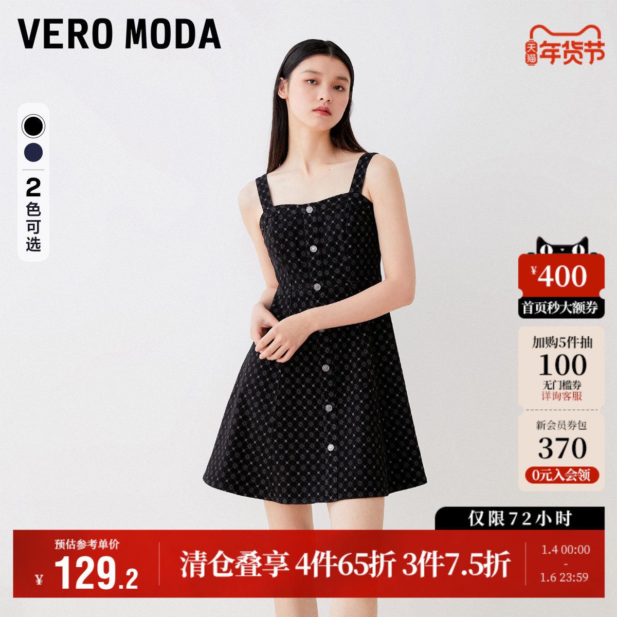 Vero Moda奥莱连衣裙子秋冬清仓logo印花时尚收腰A摆气质吊带裙女