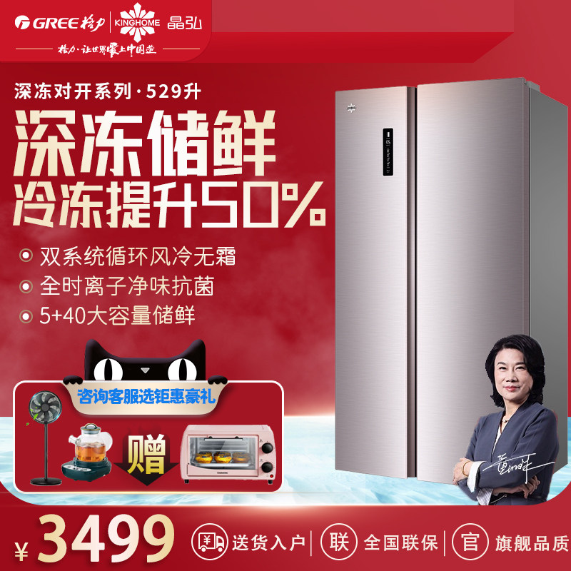 格力晶弘冰箱家用双开门529升大容量对开门智能变频风冷无霜净味
