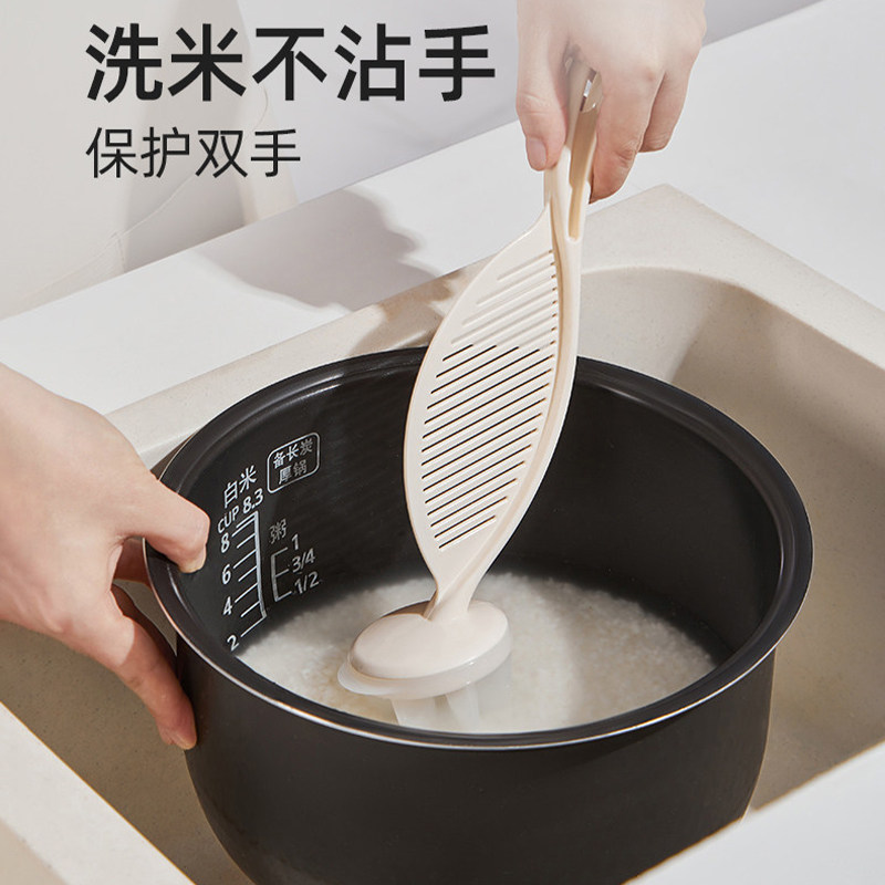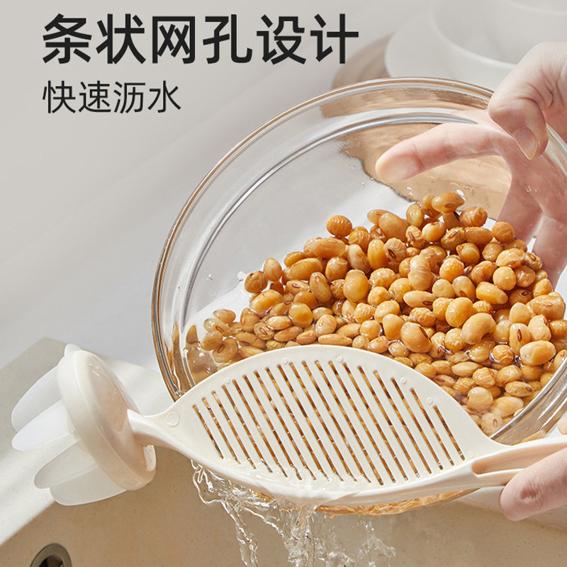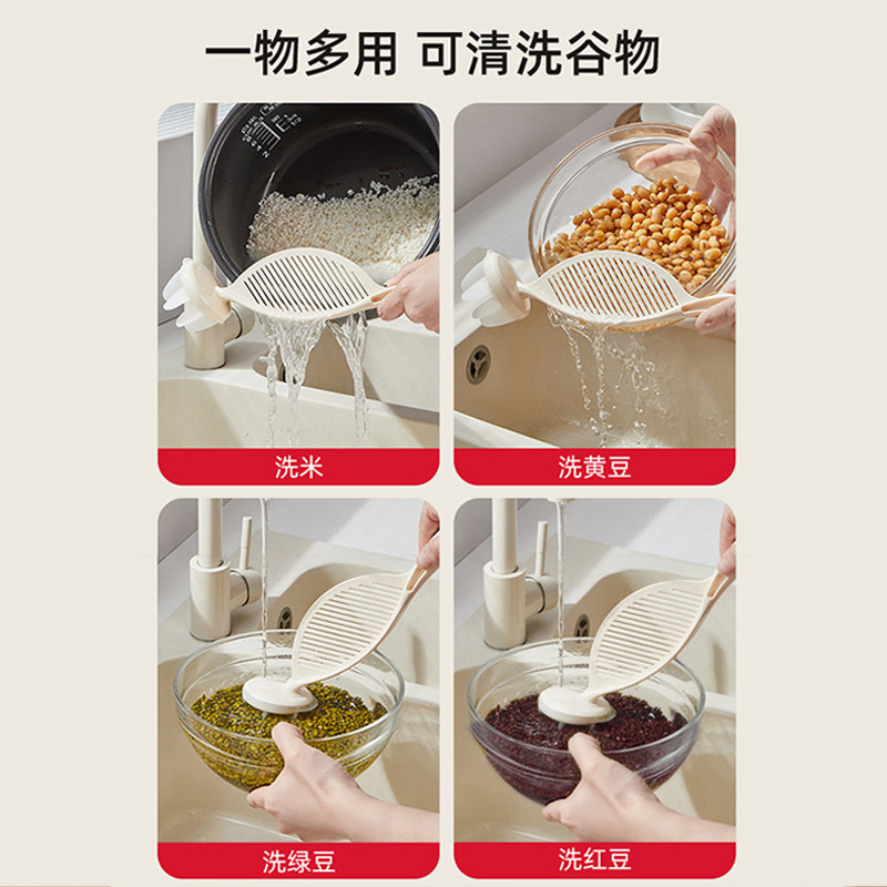 不撒米淘米神器食品级沥水挡板量杯过滤器漏勺厨房洗米筛滤网奶油