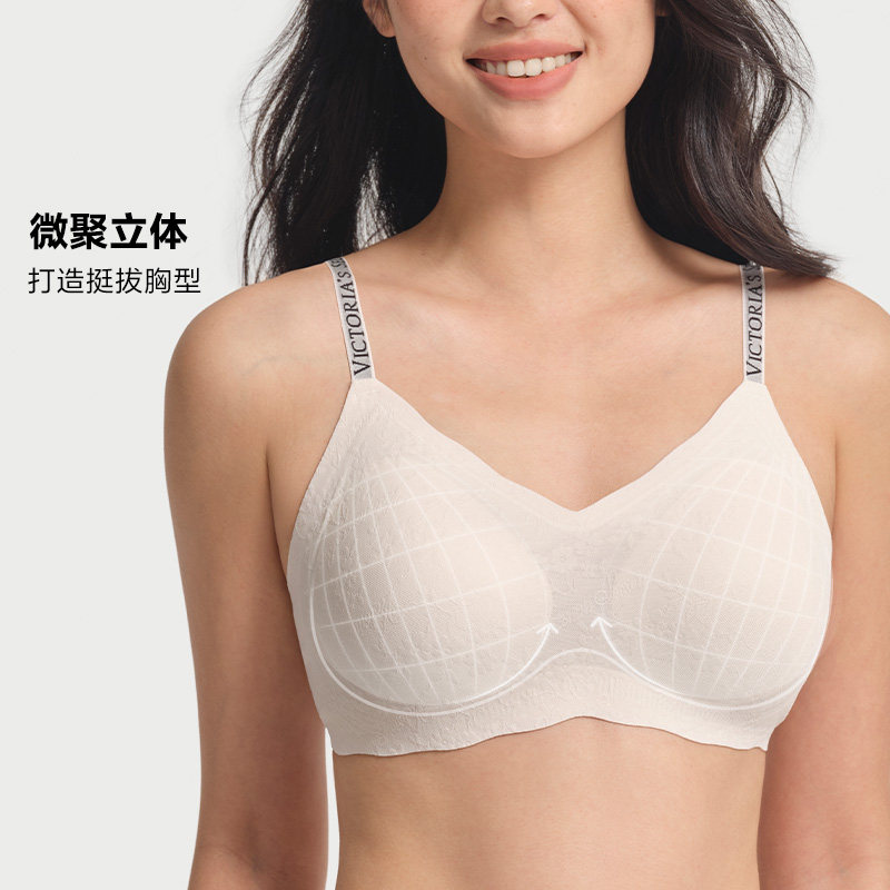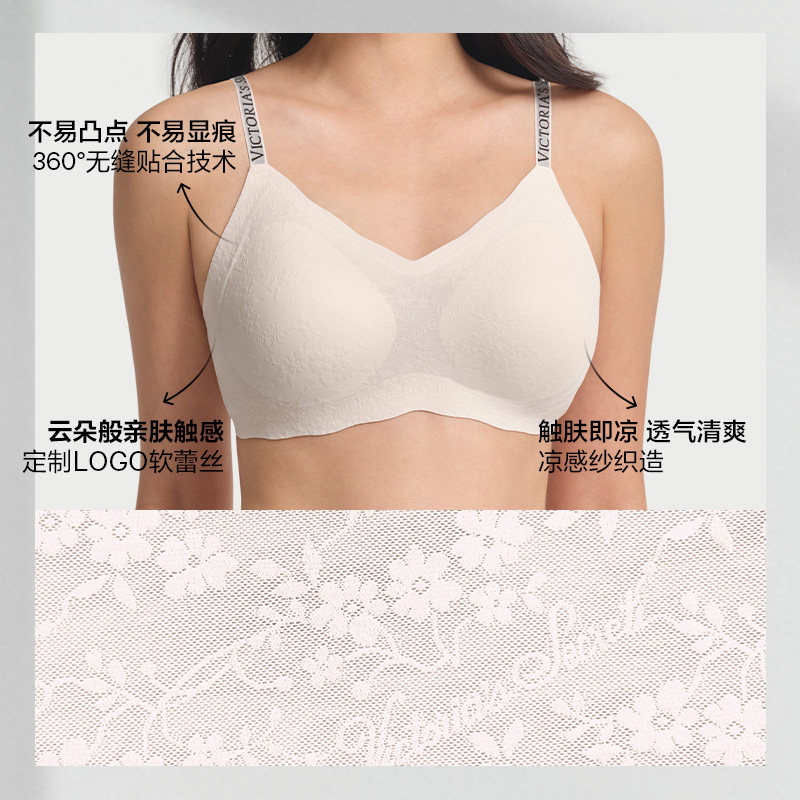 维密反重力花边蕾丝文胸LOGO字母肩带云感舒适无痕内衣女2026春