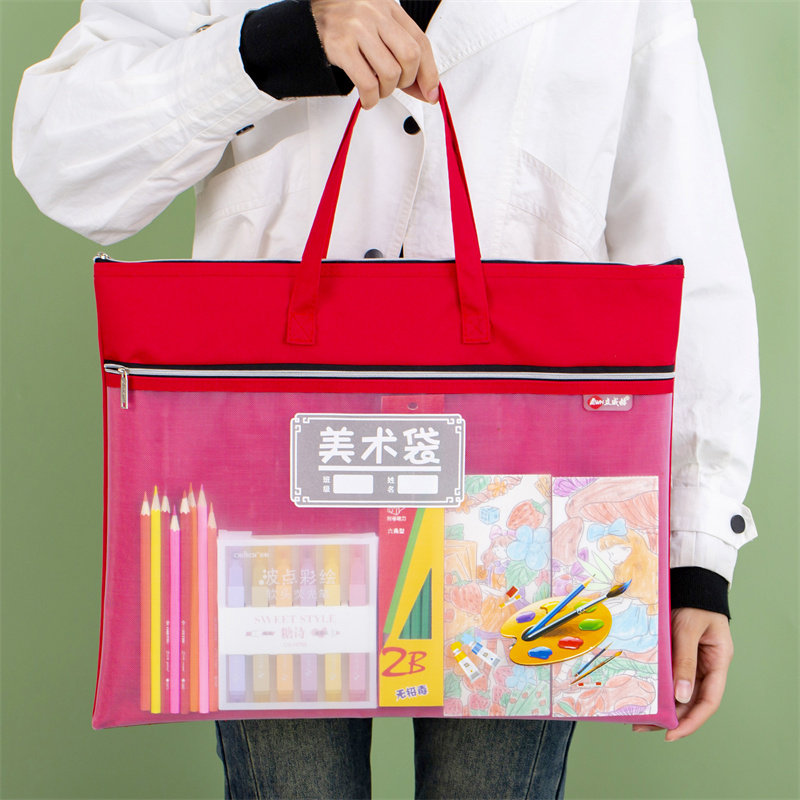 大号8K美术袋8开文件袋小学生手提袋书袋画画美术包学生专用美术工具袋带拉链双层大容量拎书可爱卡通补习袋