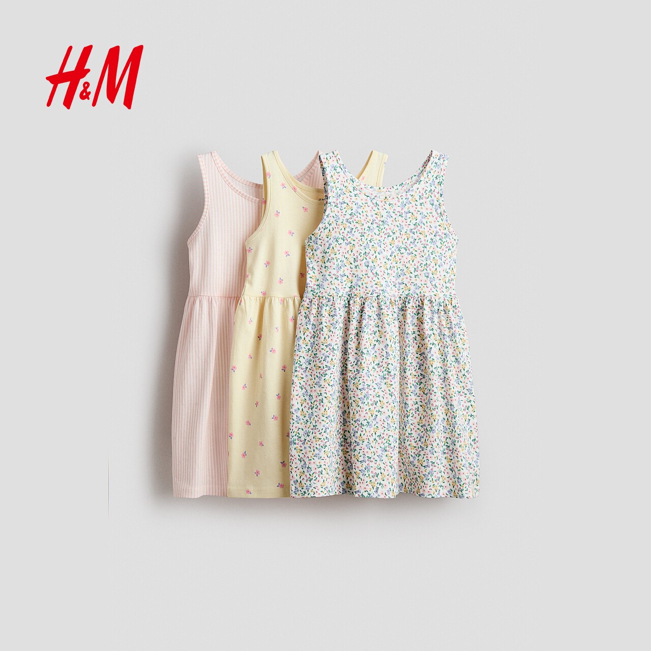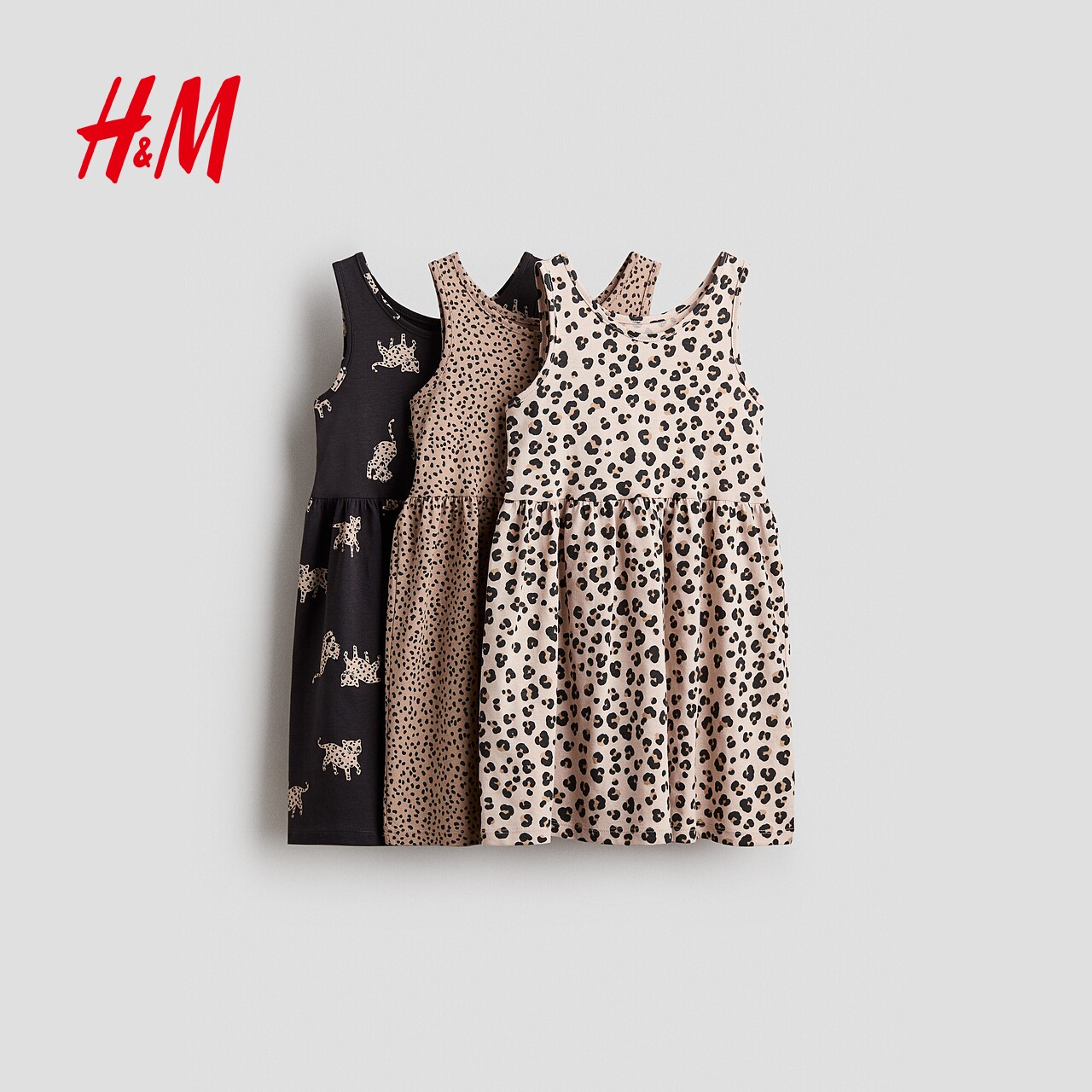 HM童装儿童女童裙子3件装2026春季新款印花出游棉质连衣裙1281576