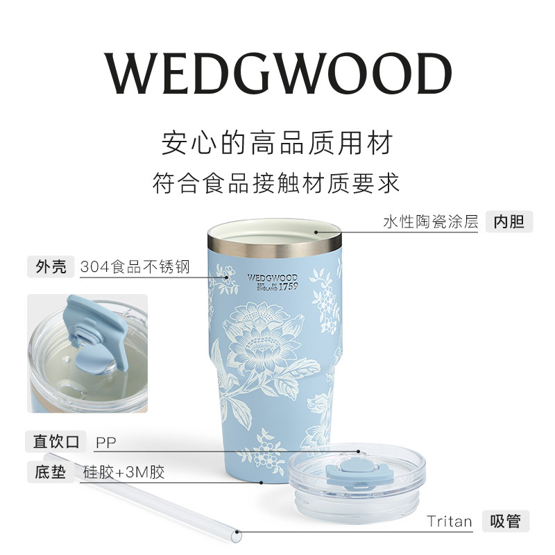 【会员免费刻字】WEDGWOOD陶瓷内胆漫游美镜吸管杯双饮保温杯礼物