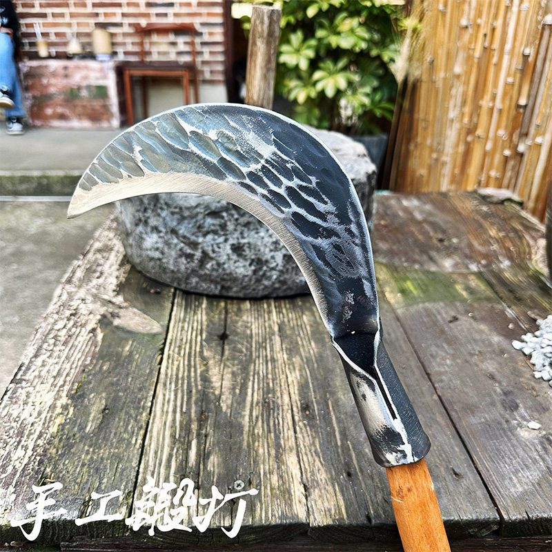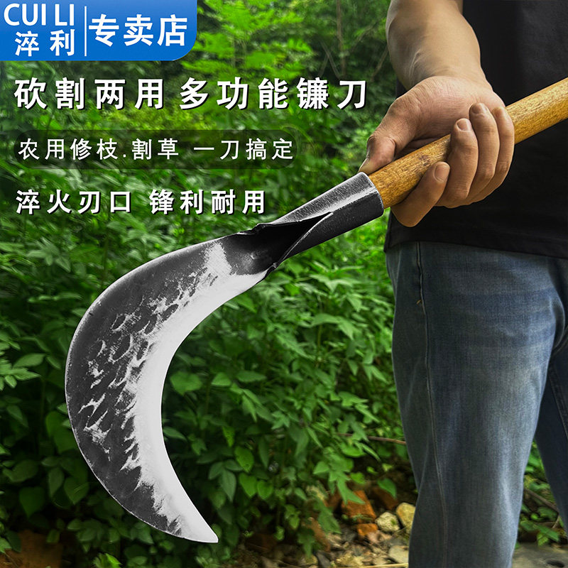 手工锻打碳钢镰刀农用割草刀修枝砍柴弯刀砍割两用镰刀小麦收割刀