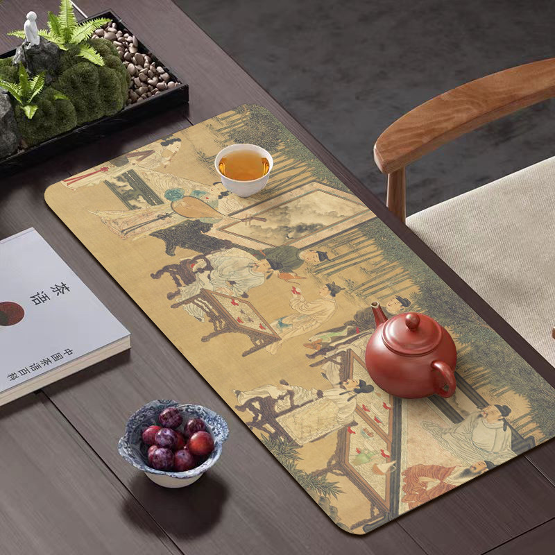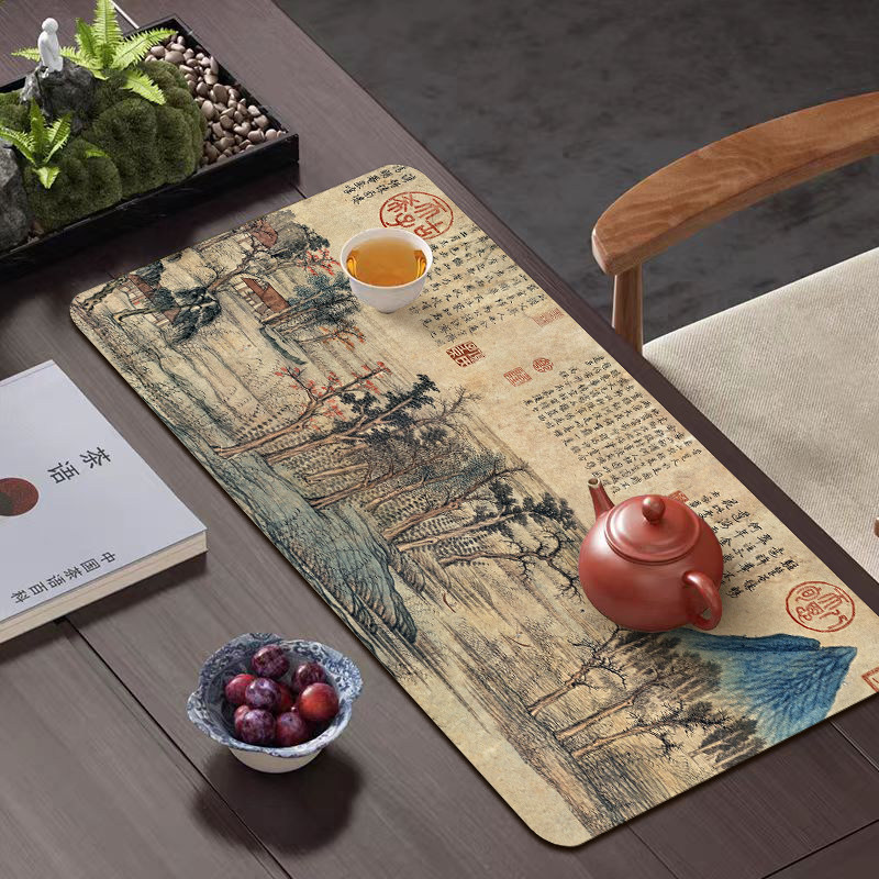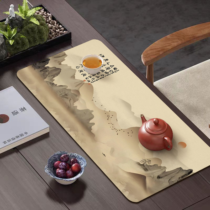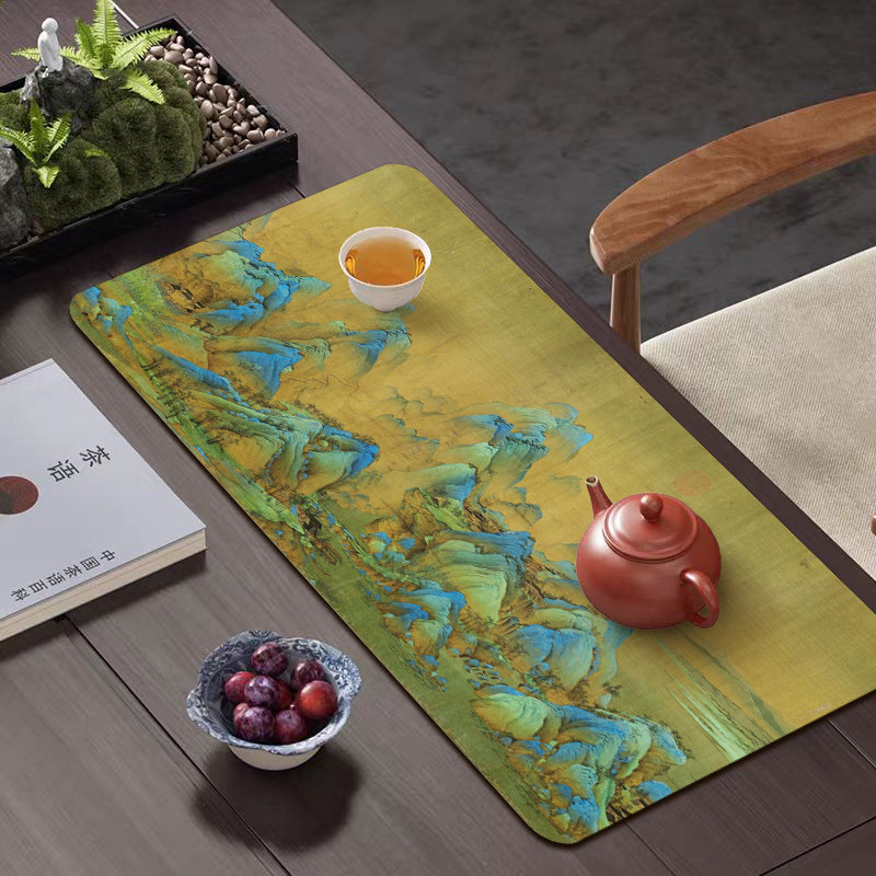 硅藻泥吸水茶垫中式茶席桌旗吸水垫高档大气茶旗垫茶桌垫布茶垫新