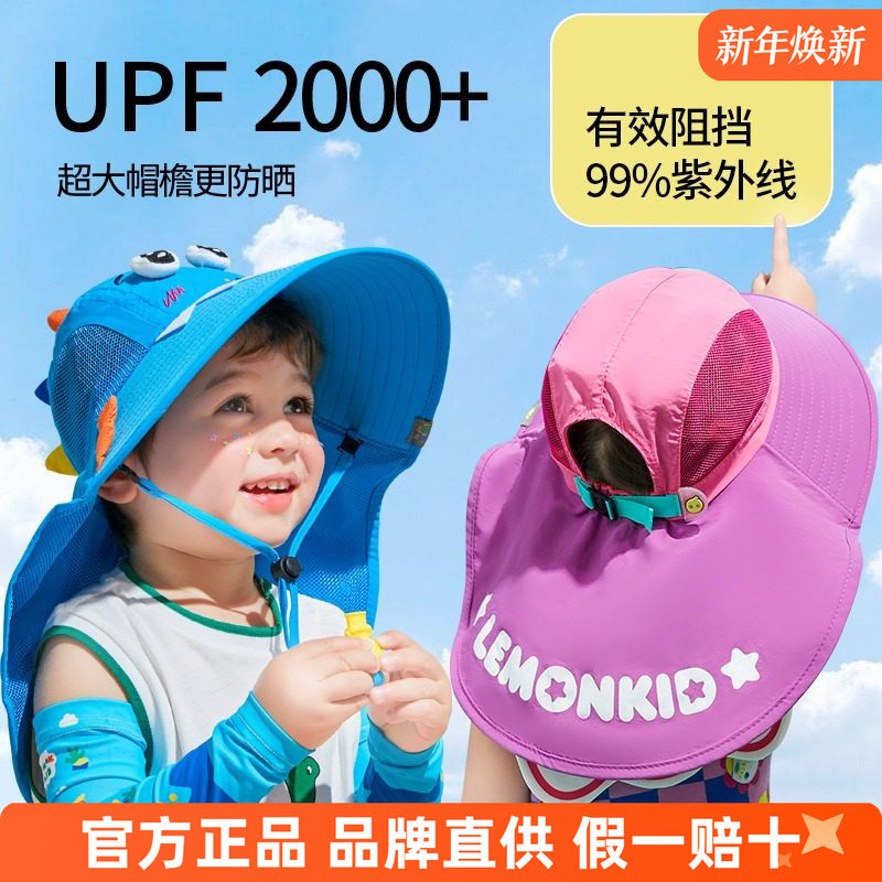 柠檬宝宝儿童防晒帽遮阳帽子男女童夏季防紫外线沙滩太阳帽大帽檐