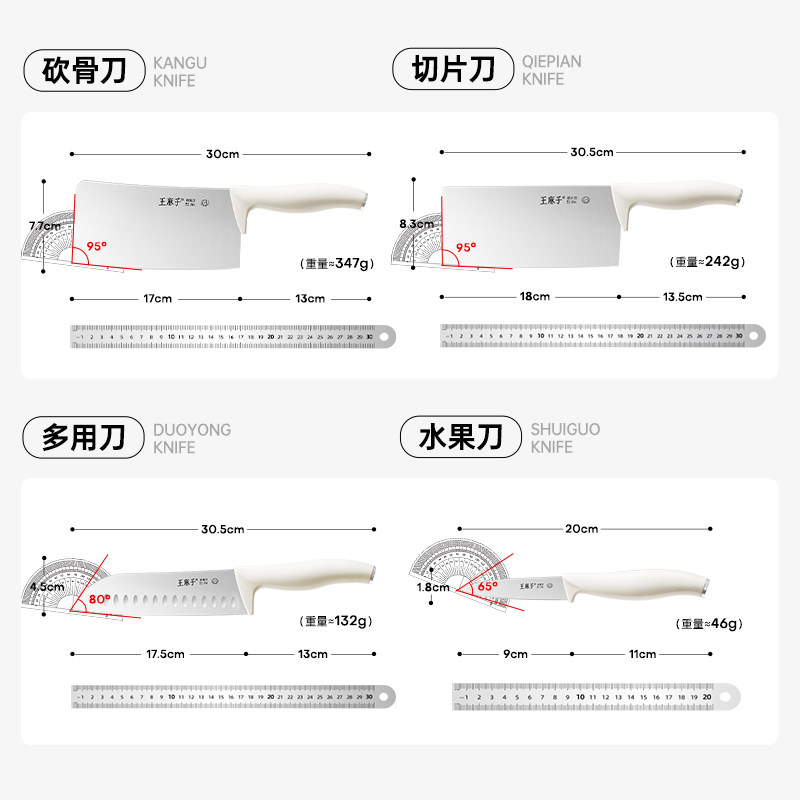 王麻子刀具套装组合全套厨房家用不锈钢厨具切菜刀菜板二合一专用