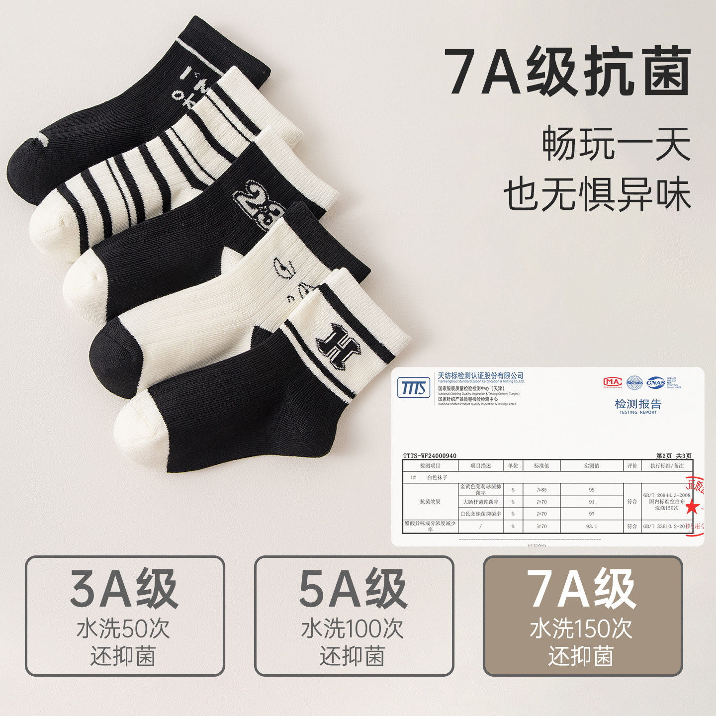 儿童袜子春秋棉袜7A抗菌防臭A类棉秋冬季宝宝袜子男童无骨中筒袜
