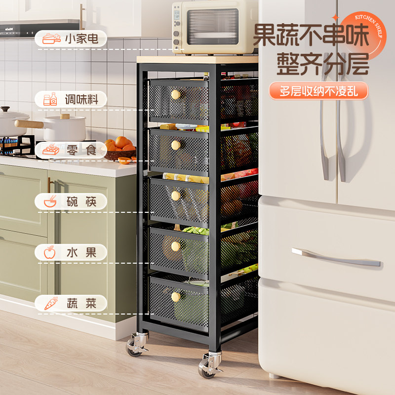菜篮子厨房置物架落地多层水果蔬菜收纳用品靠墙角移动零食小推车