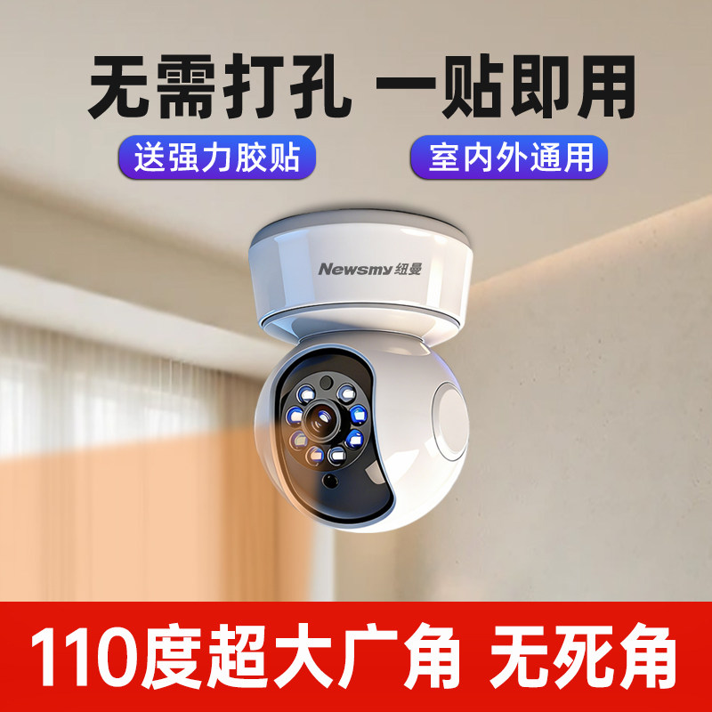 纽曼高清摄像头免打孔吸顶监控智能无线4GWIFI连接远程手机操作转