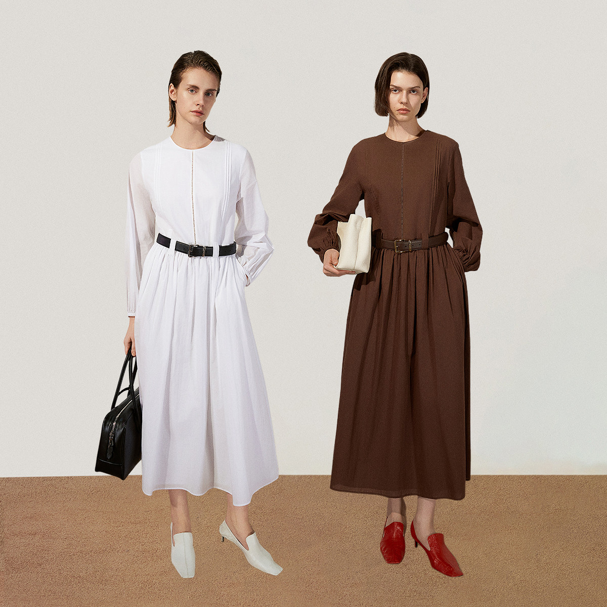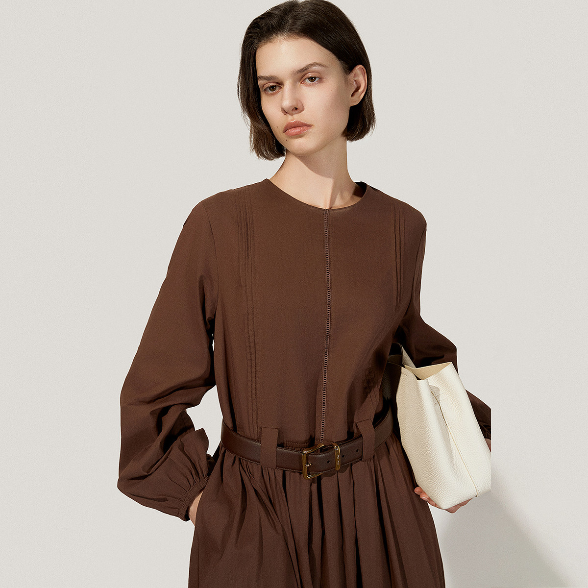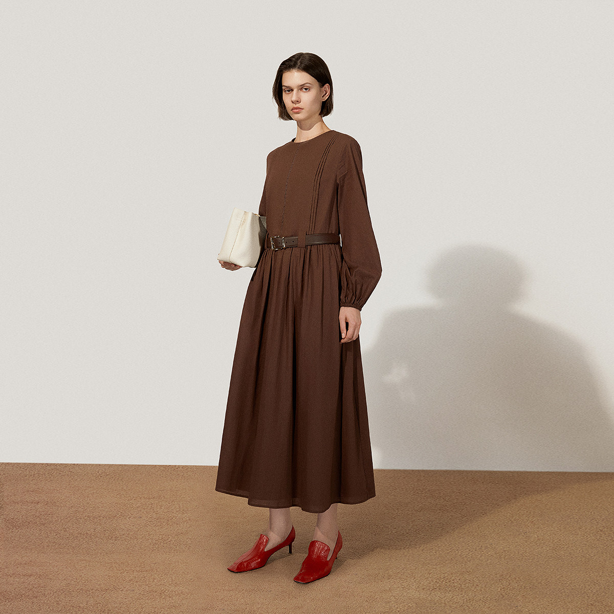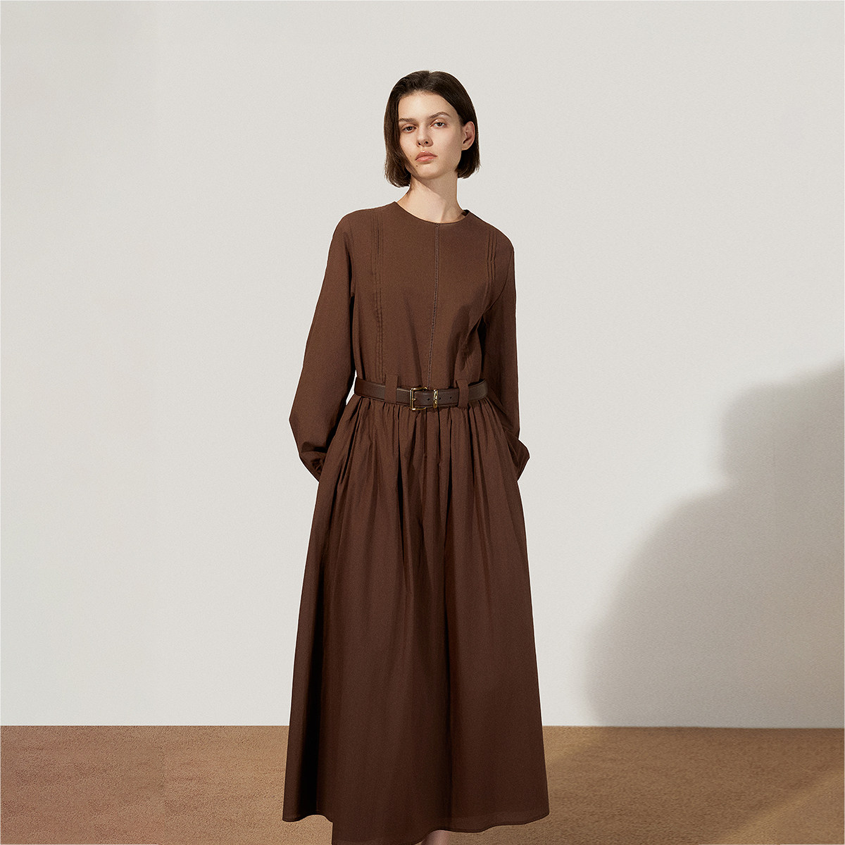 【季末折扣】欧时力 100%进口棉连衣裙长款法式A字气质25秋冬新品