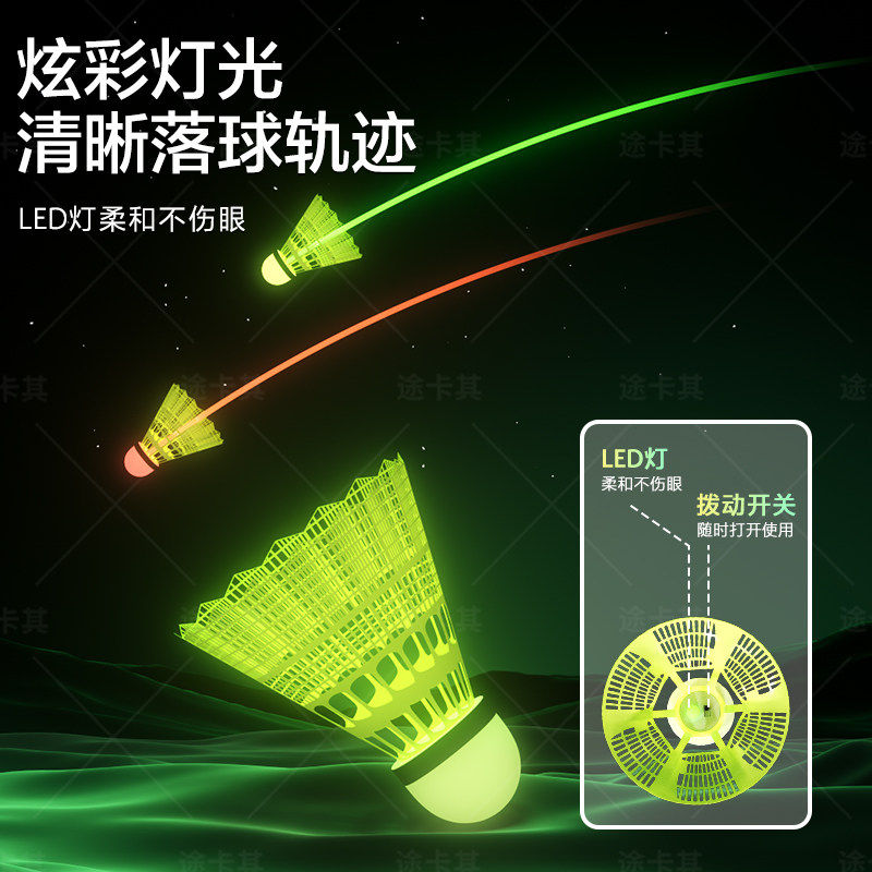 夜光羽毛球塑料防风耐打带灯户外训练室外尼龙夜间荧光发光球套装
