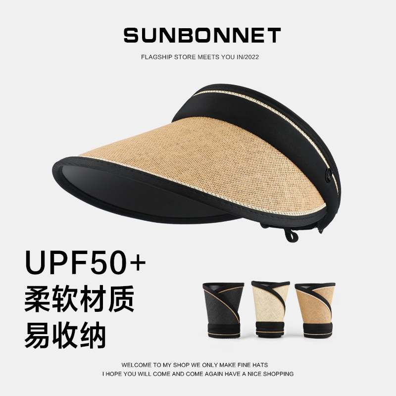 蕉下轻量蛋卷帽可折叠户外遮阳防紫外线侧脸空顶太阳帽女士防晒帽