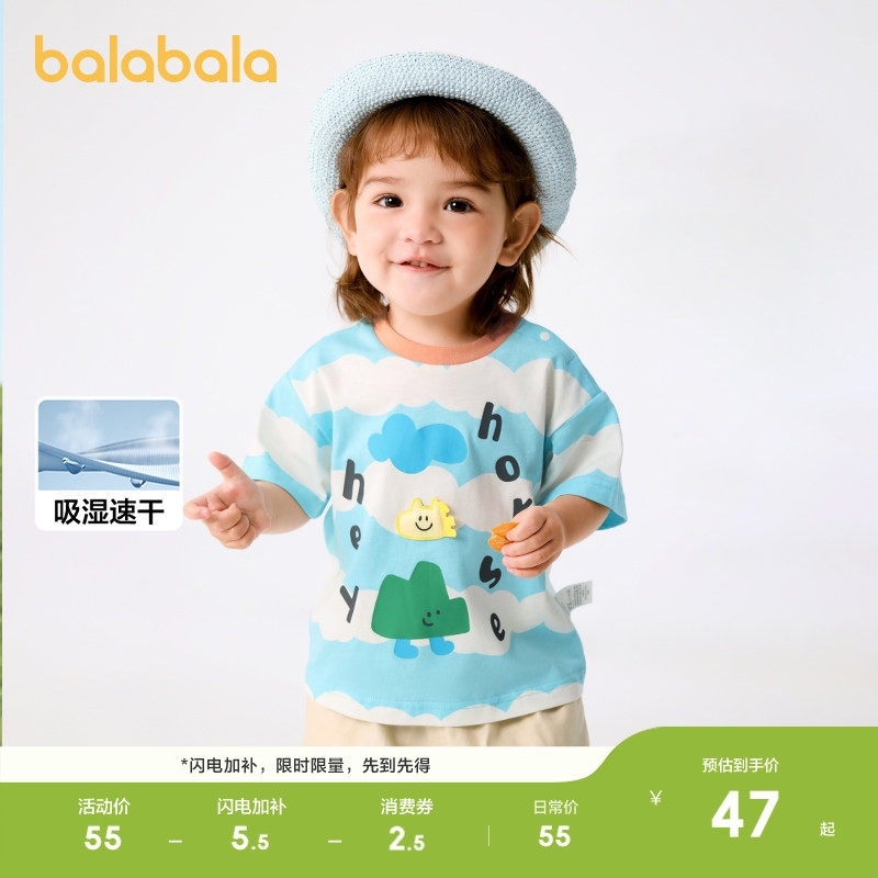 巴拉巴拉婴儿t恤宝宝上衣女童衣服男童短袖轻薄新款夏装时髦可爱