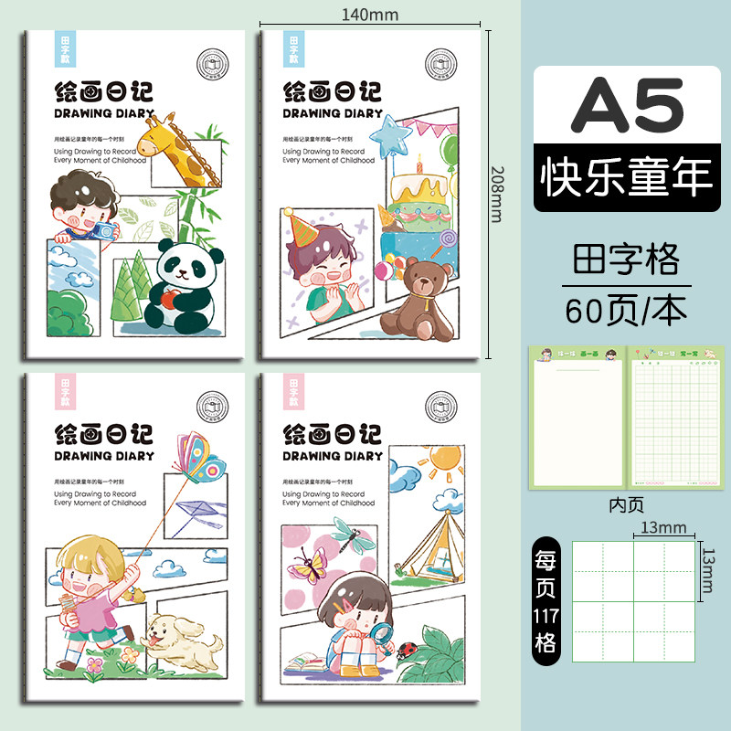 小学画画日记本卡通创意拼音田字格笔记本幼儿园儿童男女孩手绘日记看图写话本b5少儿画图写作文卡通周记事本