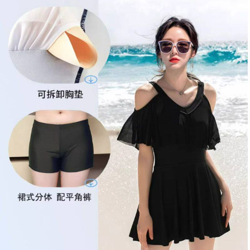 泳衣女分体二件套保守时尚韩版大码遮肚显瘦小香风胖mm泡温泉泳装
