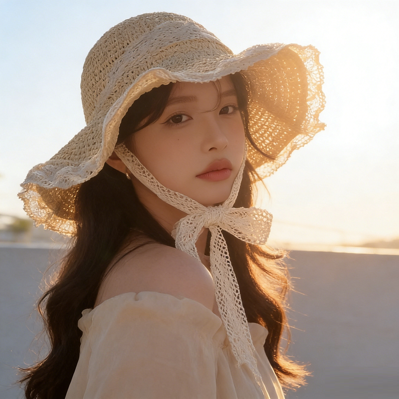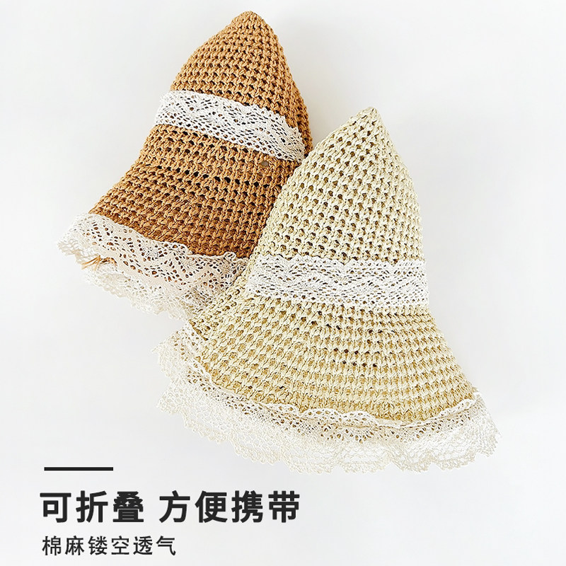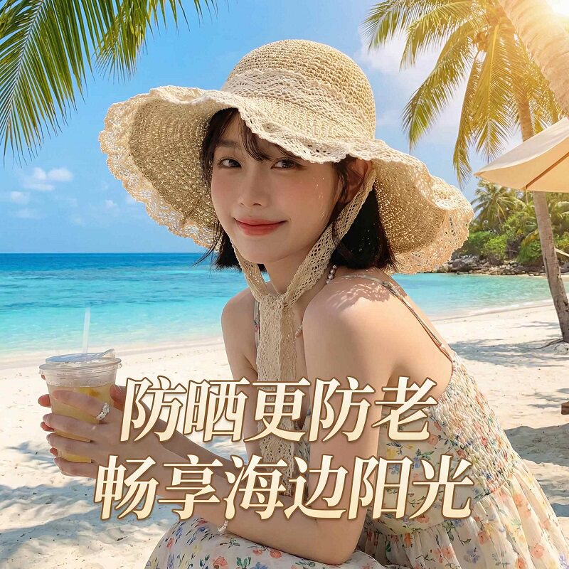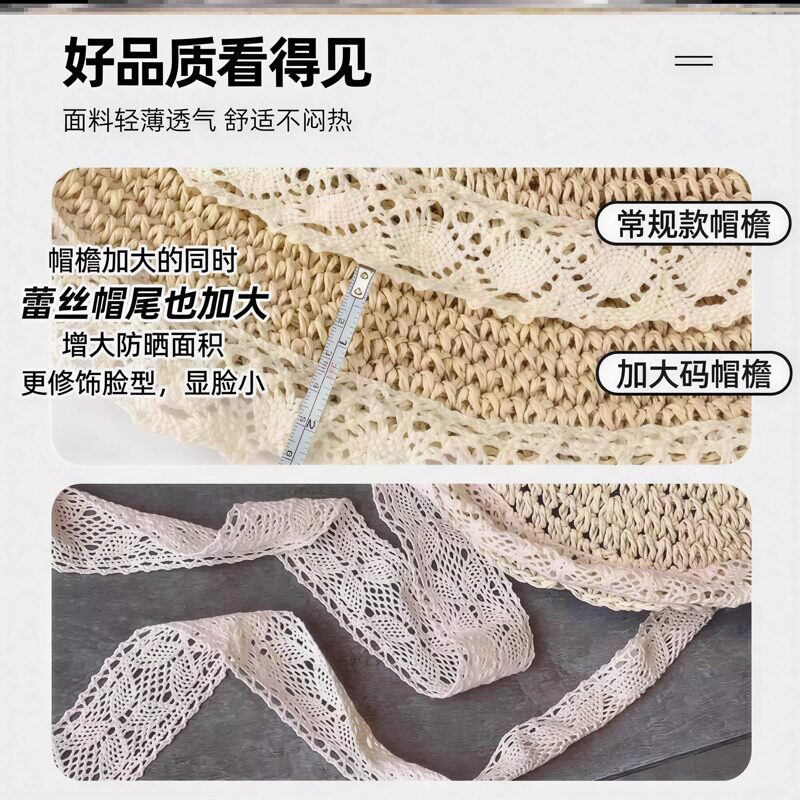 法式大帽檐草帽女夏季2026新款透气蕾丝镂空沙滩遮阳防晒帽子海边