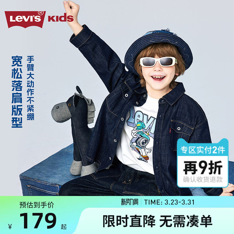 Levis李维斯儿童牛仔衬衫外套夹克2026春装新款男童女童衬衣童装