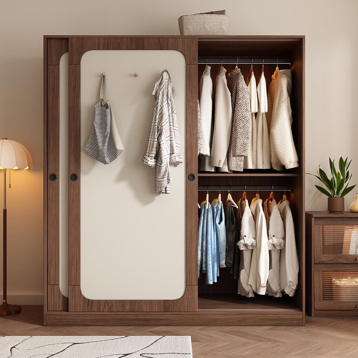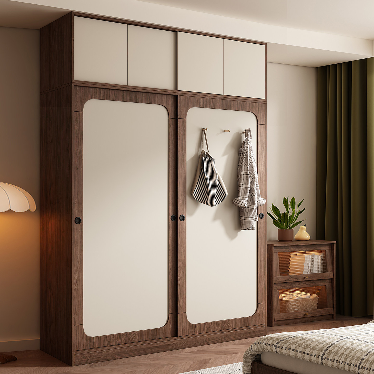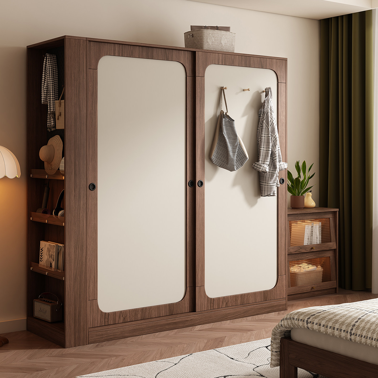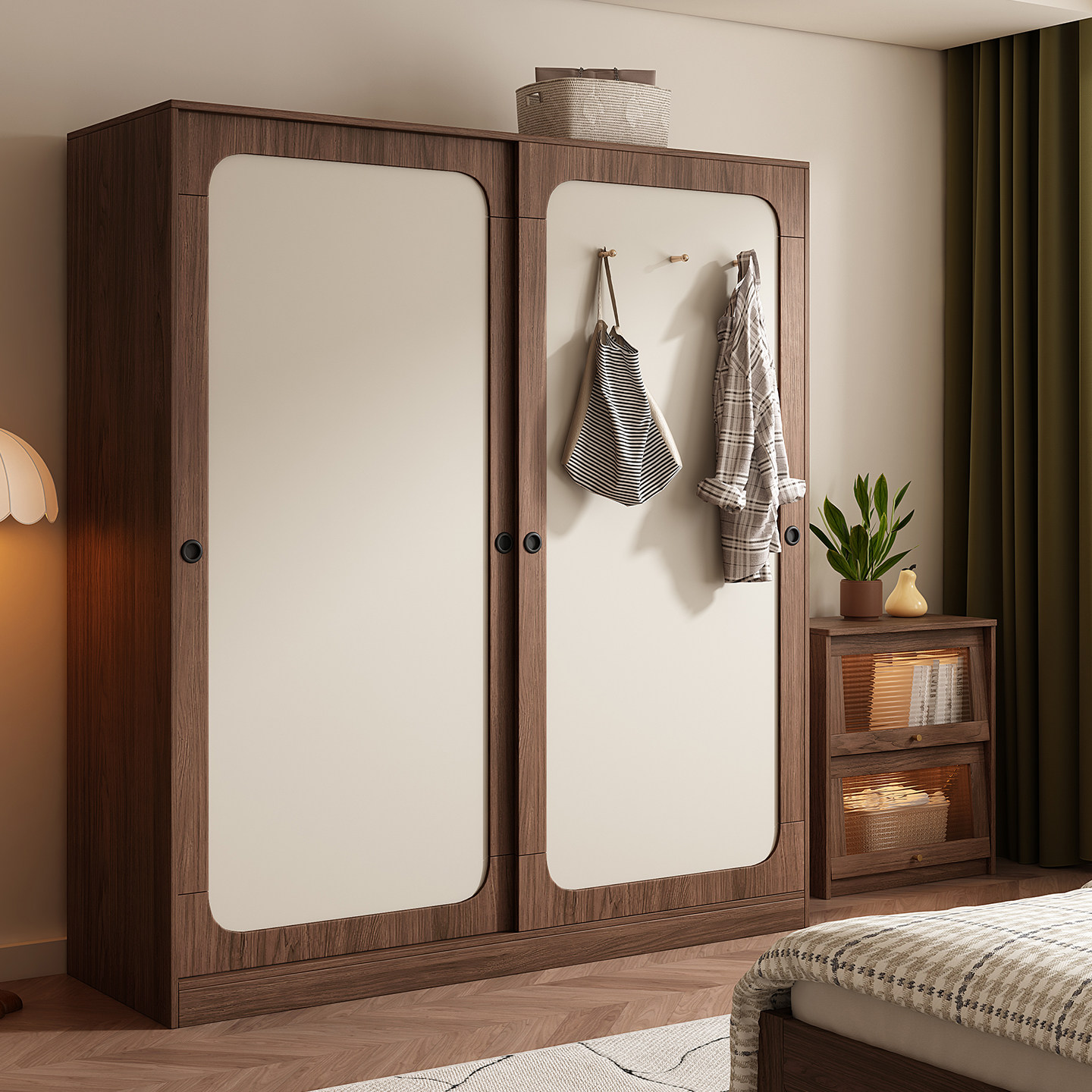 木兜家具山影衣柜黑胡桃色中古风复古推拉门衣柜卧室家用实木衣橱
