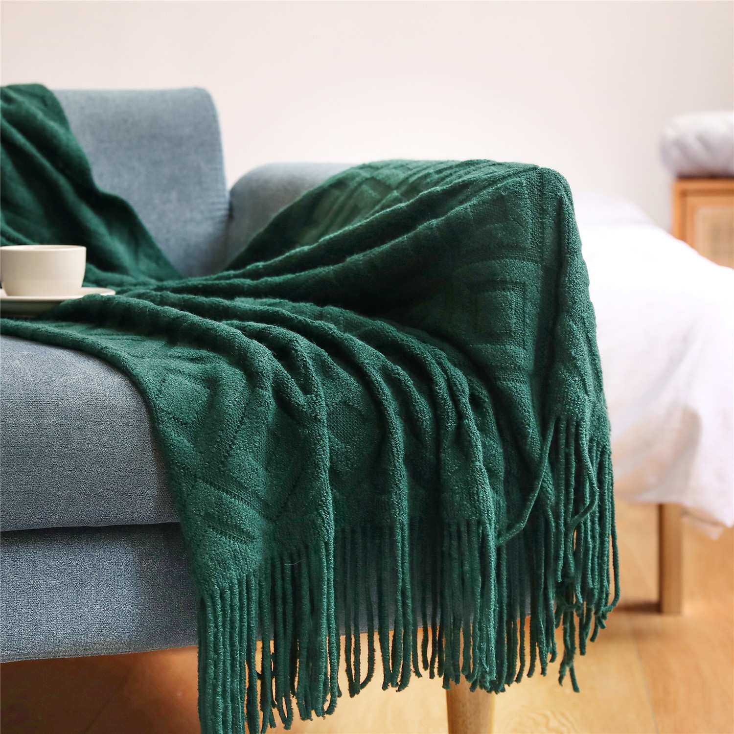沙发毯盖毯毛毯 针织毯办公室午睡毯提花小毯子美式搭毯线毯