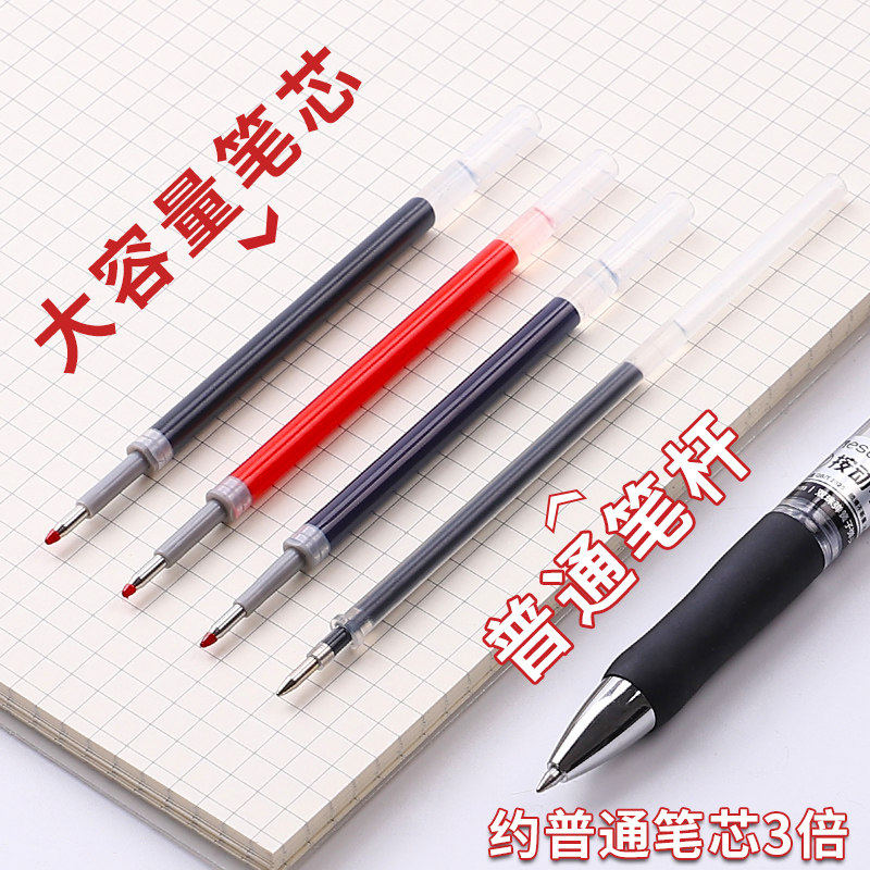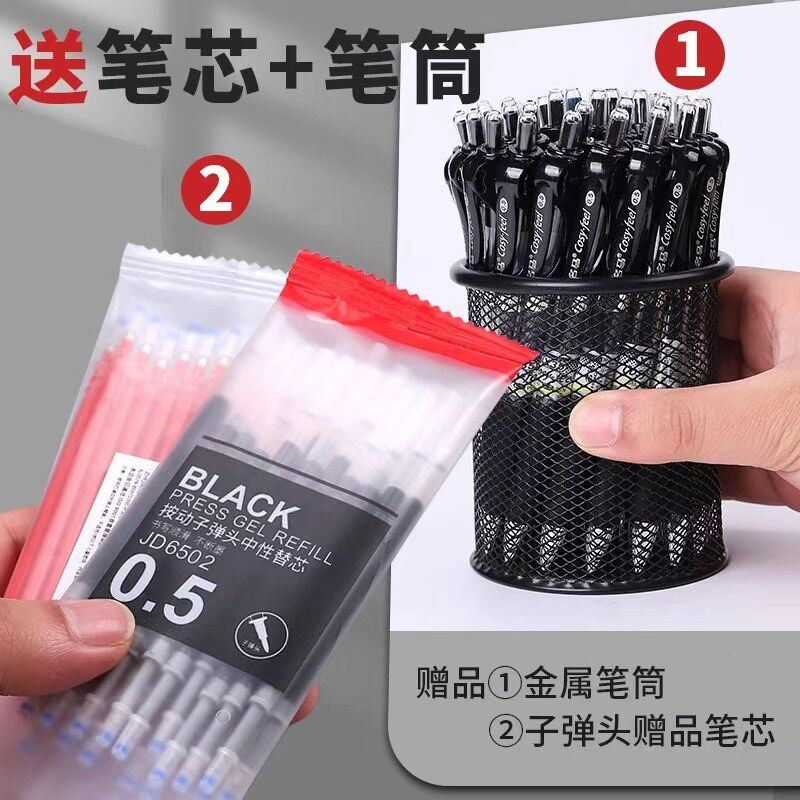100支按动中性笔笔芯子弹头速干替换芯0.5写字粗笔心学生用按压式碳素水笔芯黑笔摁动批发文具用品送晨光水笔