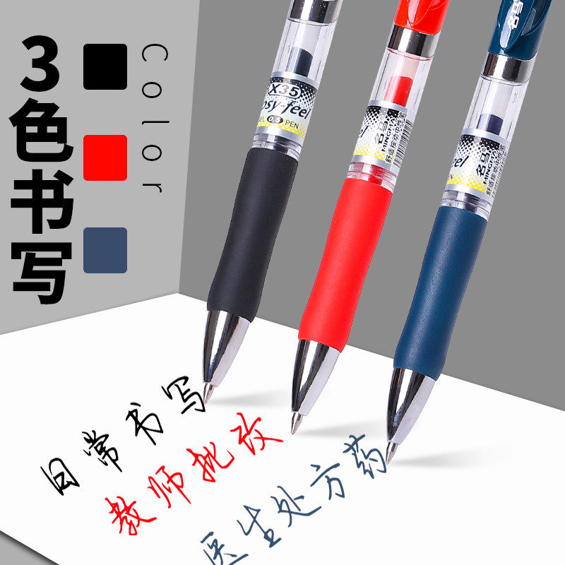 晨光中性笔按动黑笔0.5红色蓝色签字笔k35按动笔子弹头碳素水笔学生刷题笔教师办公文具用品医用墨蓝处方笔