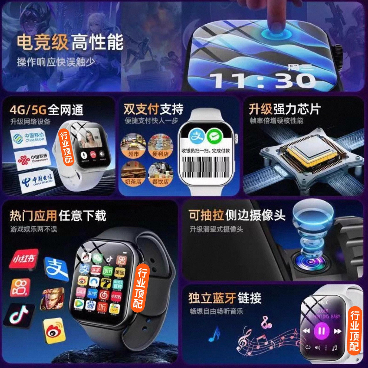 正品5G智能儿童电话手表可插卡多功能定位防水男女孩青少年初高中小学生专用硅胶游戏通话微信新款方形全网通