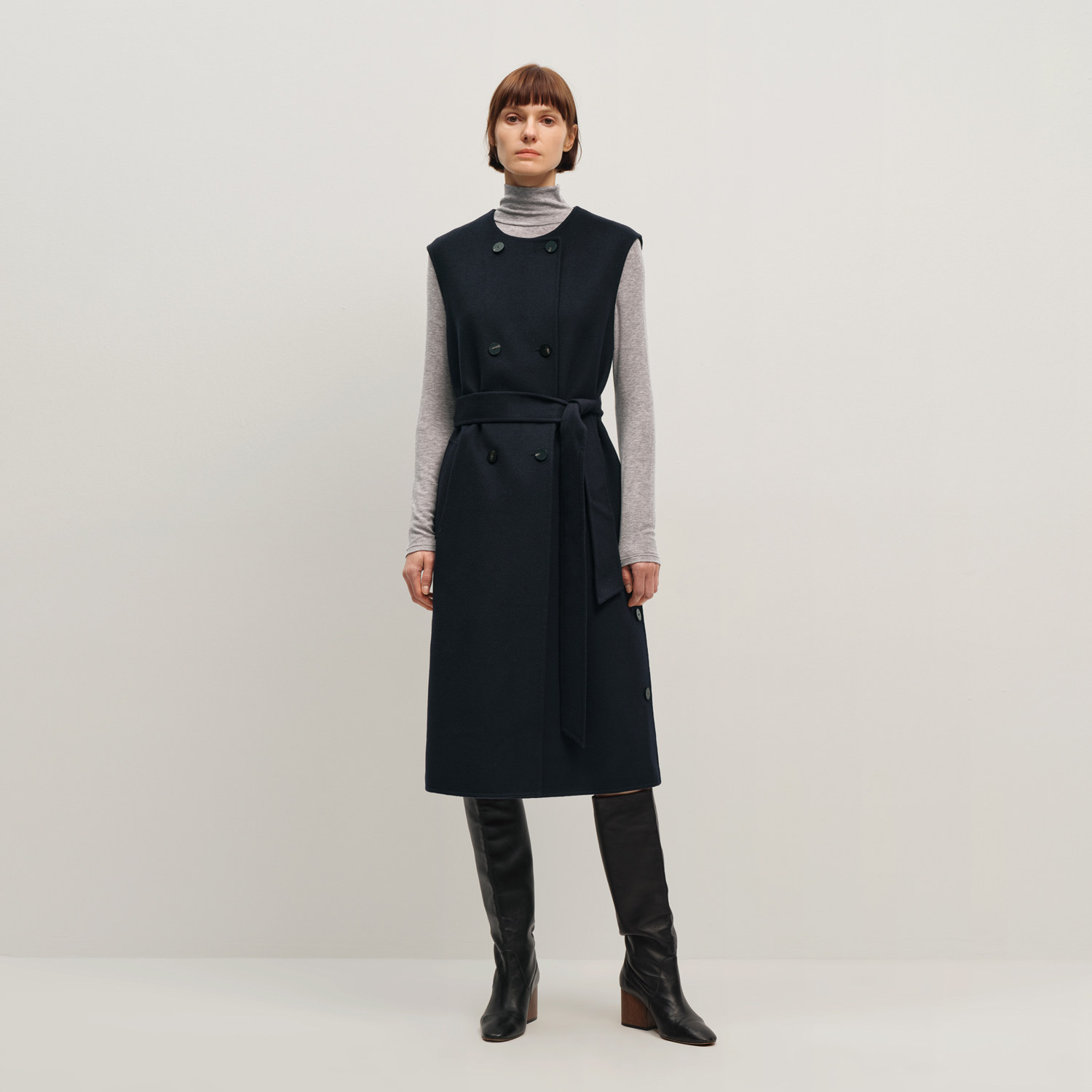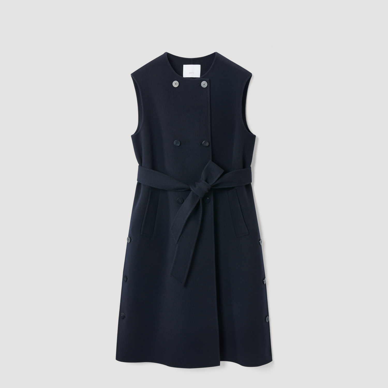OVV2025秋冬新款女装挺括羊毛双面呢圆领长款无袖大衣