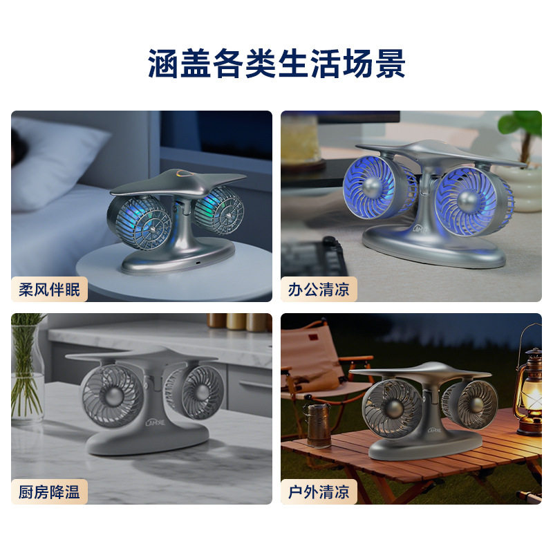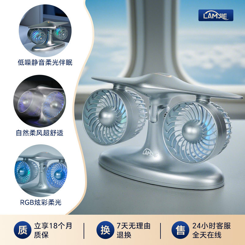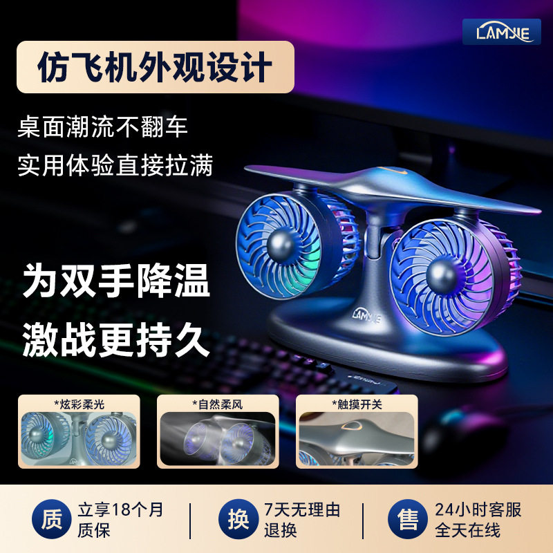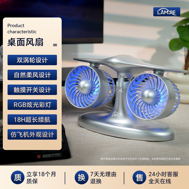 仿飞机型双头风扇创意办公桌面风扇静音便携式涡轮造型充电风扇