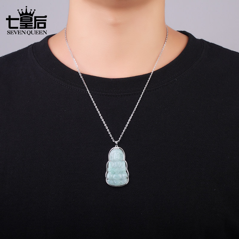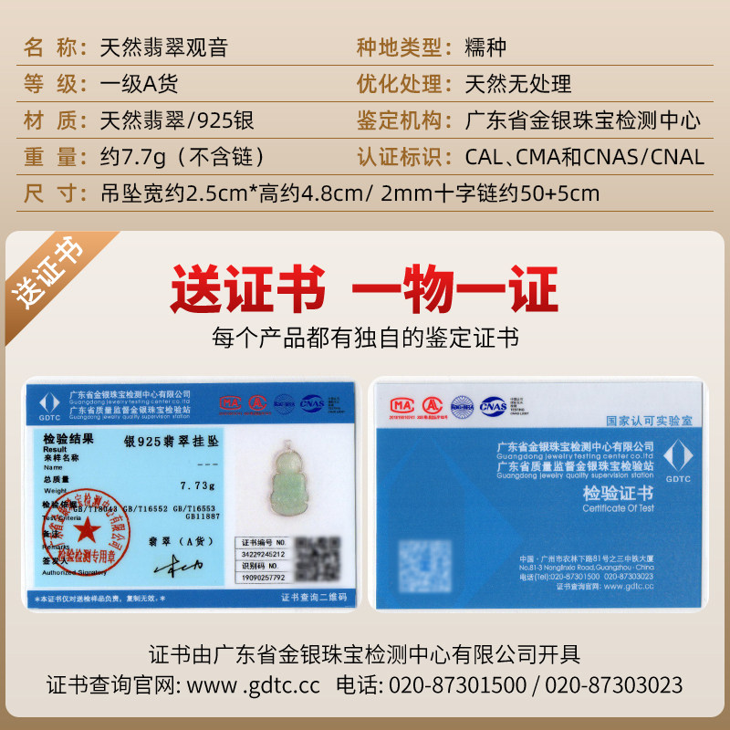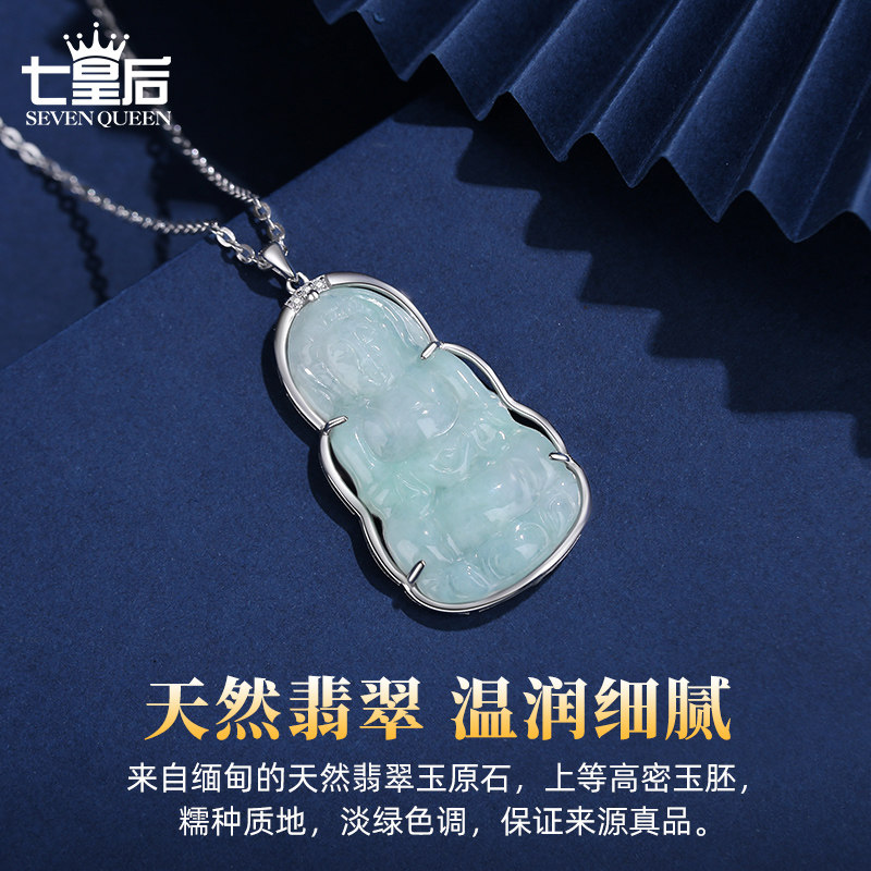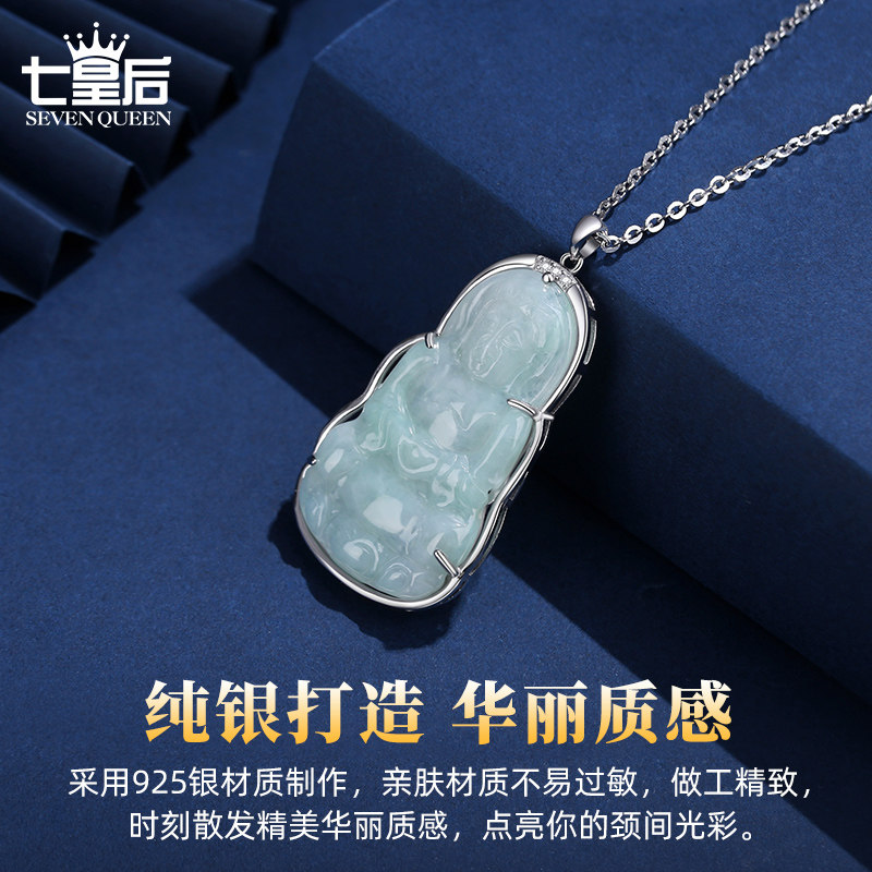 翡翠玉观音吊坠925银镶玉菩萨项链男女款缅甸玉石挂件天然正品a货