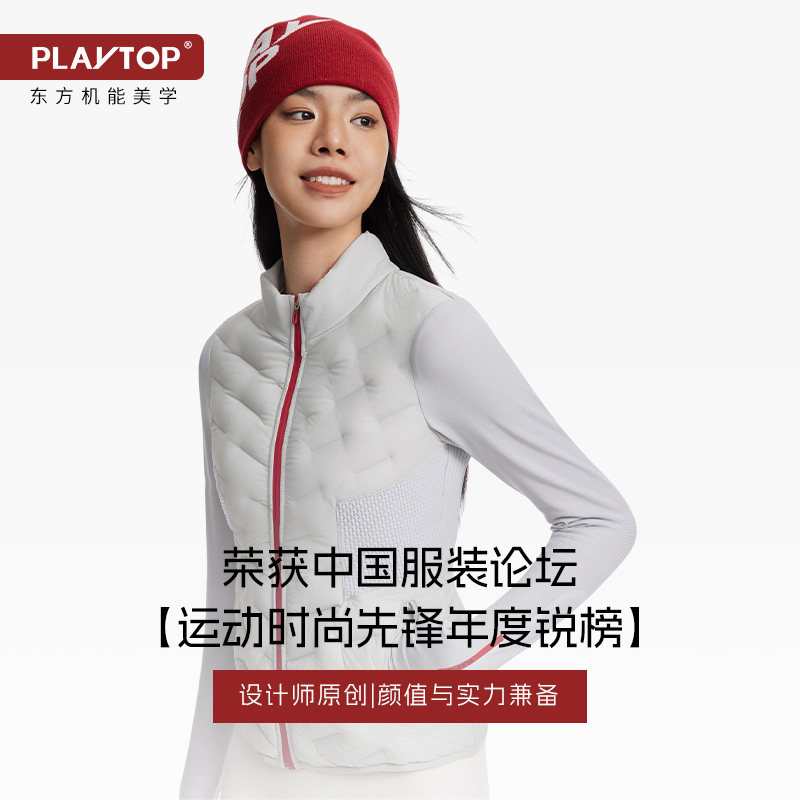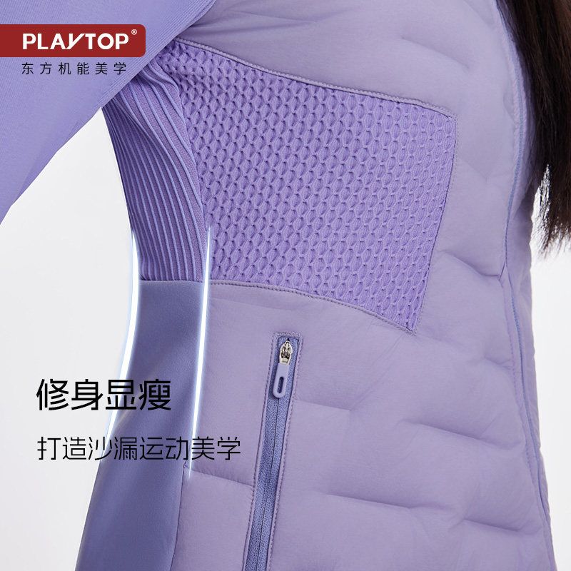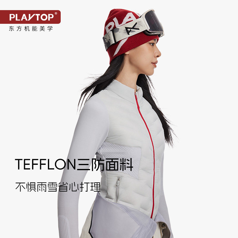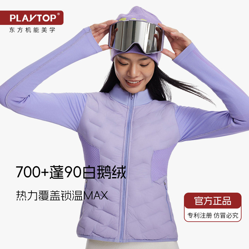 PlayTop鹅绒保暖滑雪高尔夫内胆女修身徒步轻薄排骨羽绒服中间层