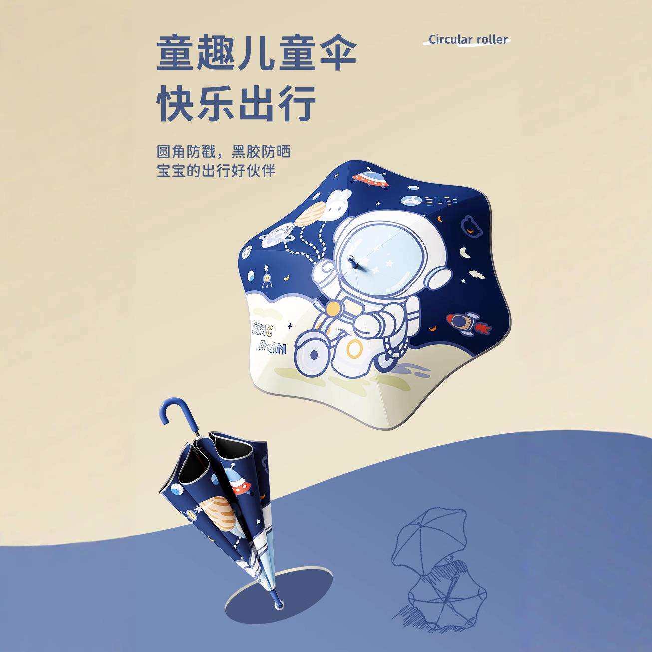 新款高个子儿童专用雨伞圆角滚轮超大号男小学生防戳伤女孩黑胶晴