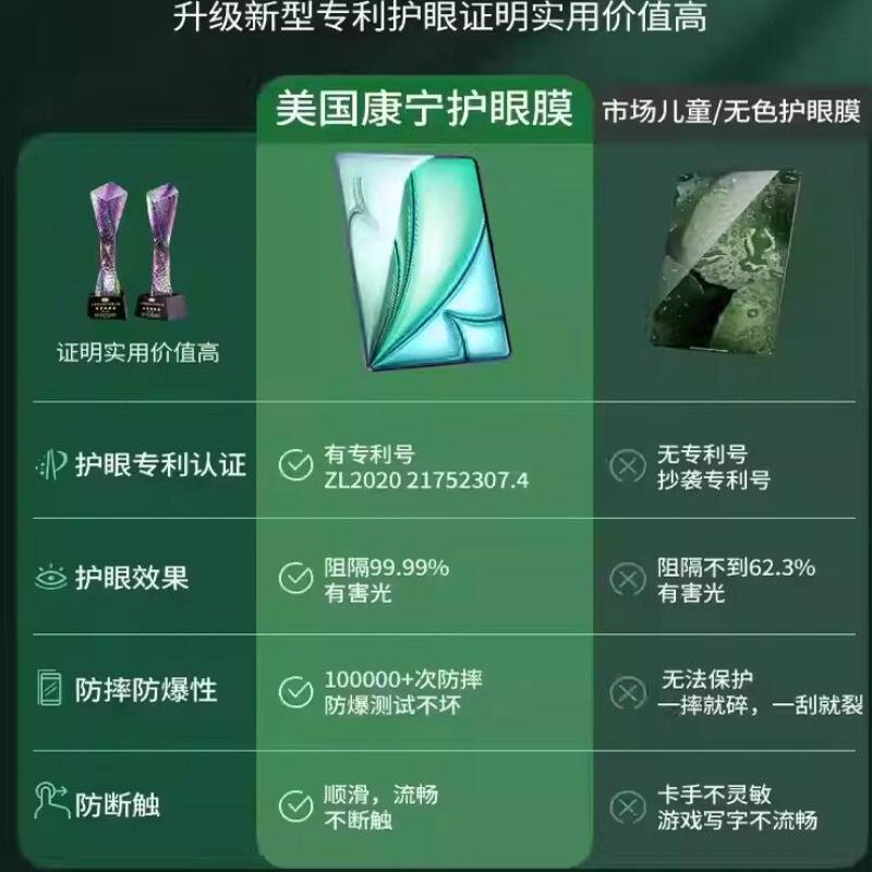 韩淼适用苹果iPad钢化膜Pro2024款Air6平板护眼膜韩帅air5/4/2022/2021防蓝光11/12.9/13寸保护膜mini7/6贴膜