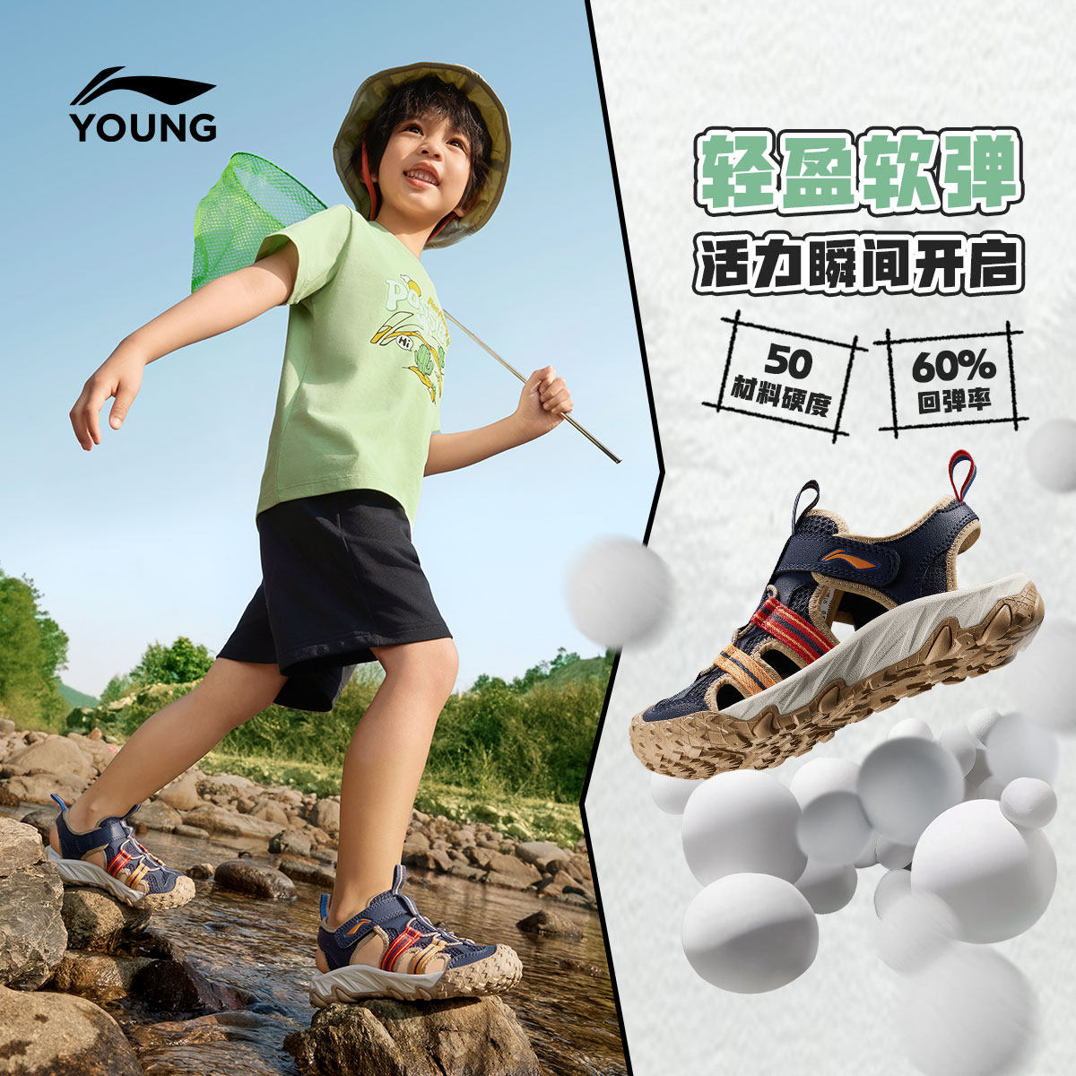 李宁小童户外运动凉鞋轻便软底夏款男童鞋女宝宝包头溯溪鞋沙滩鞋