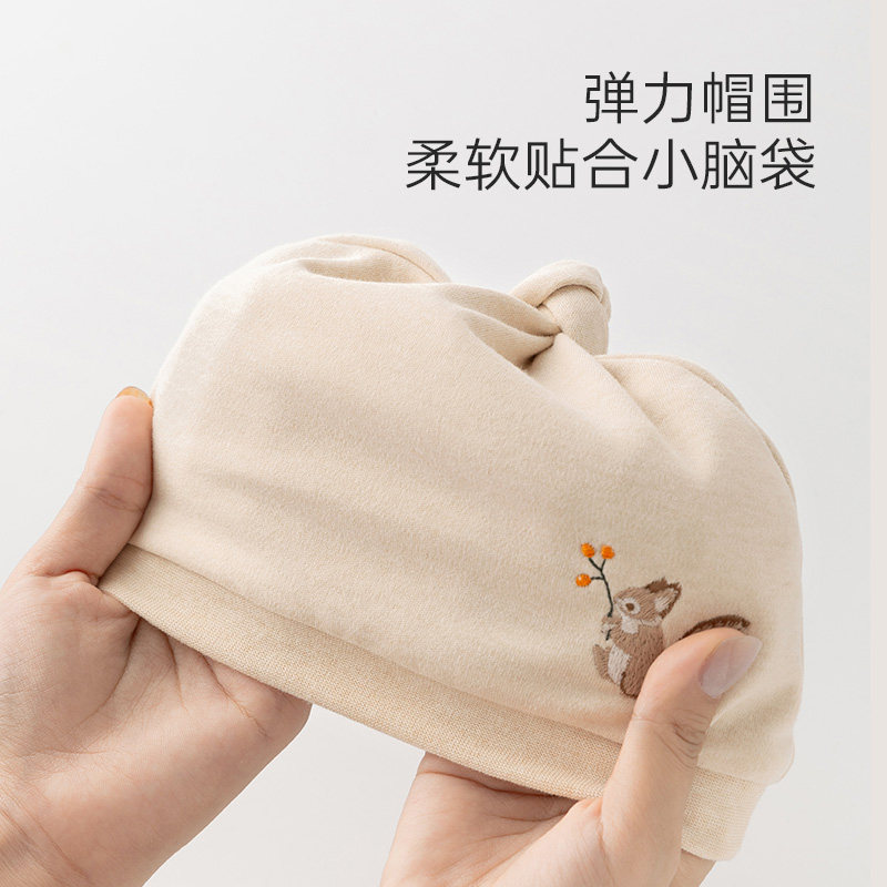 【原色彩棉】新生儿胎帽四季款婴儿护囟门帽宝宝外出防风帽子春秋