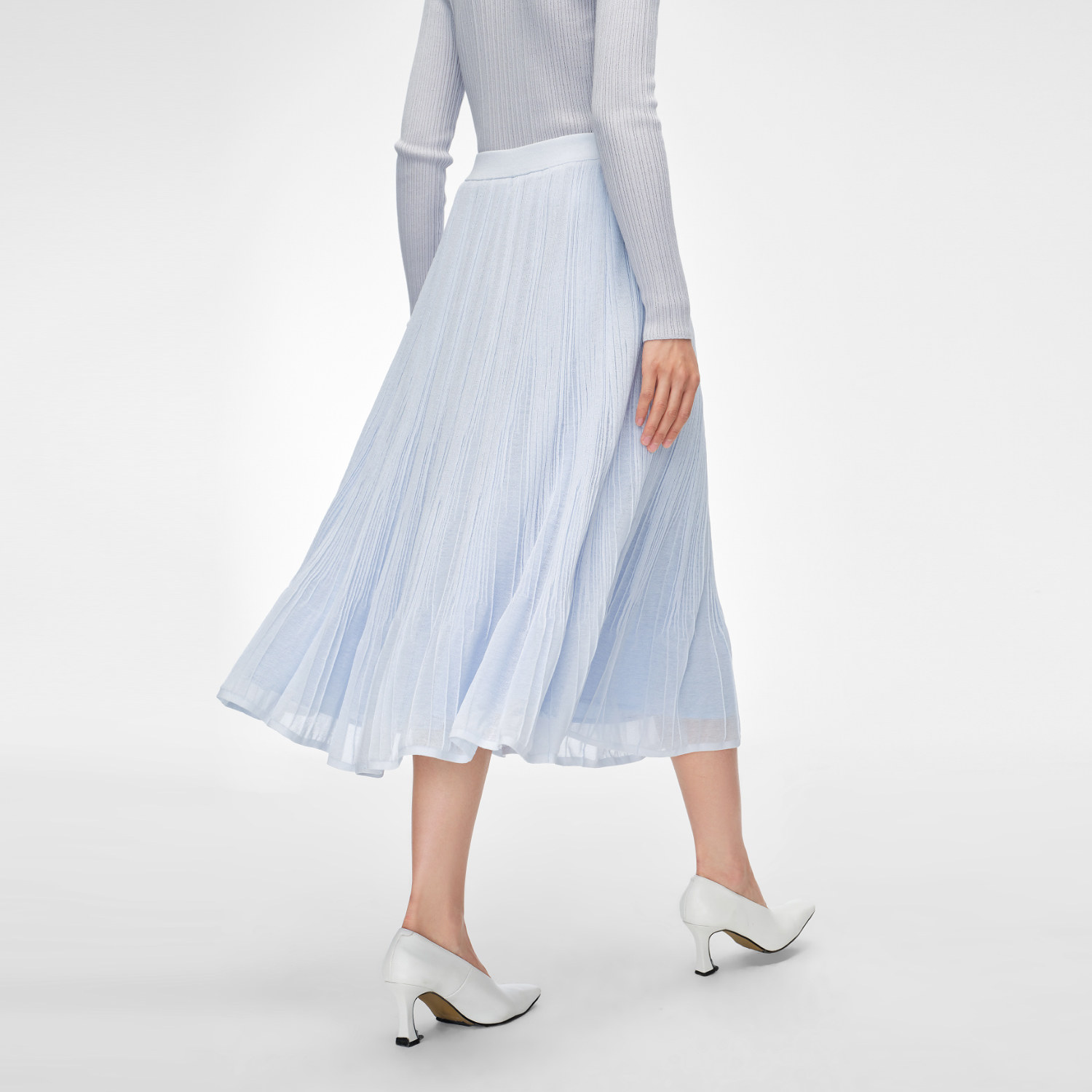 OVV春夏热卖女装轻盈飘逸干爽舒适松紧腰A字百褶半身裙