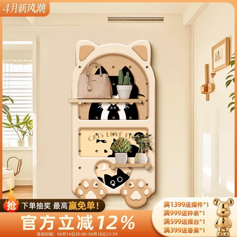 洞洞板置物架创意钥匙收纳挂钩墙上一体造型墙面挂板入户玄关隔板