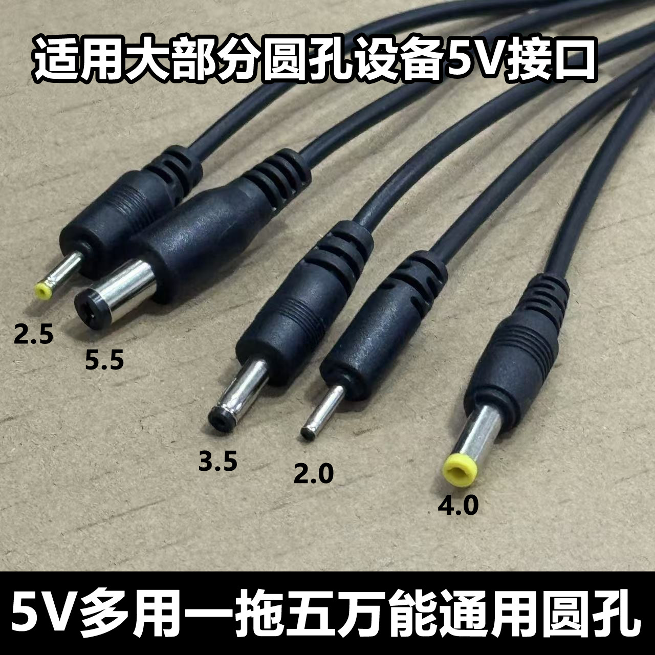 圆孔一拖五万能充电线2.0/2.5/3.5/4.0/5.5圆头音响玩具台灯充电