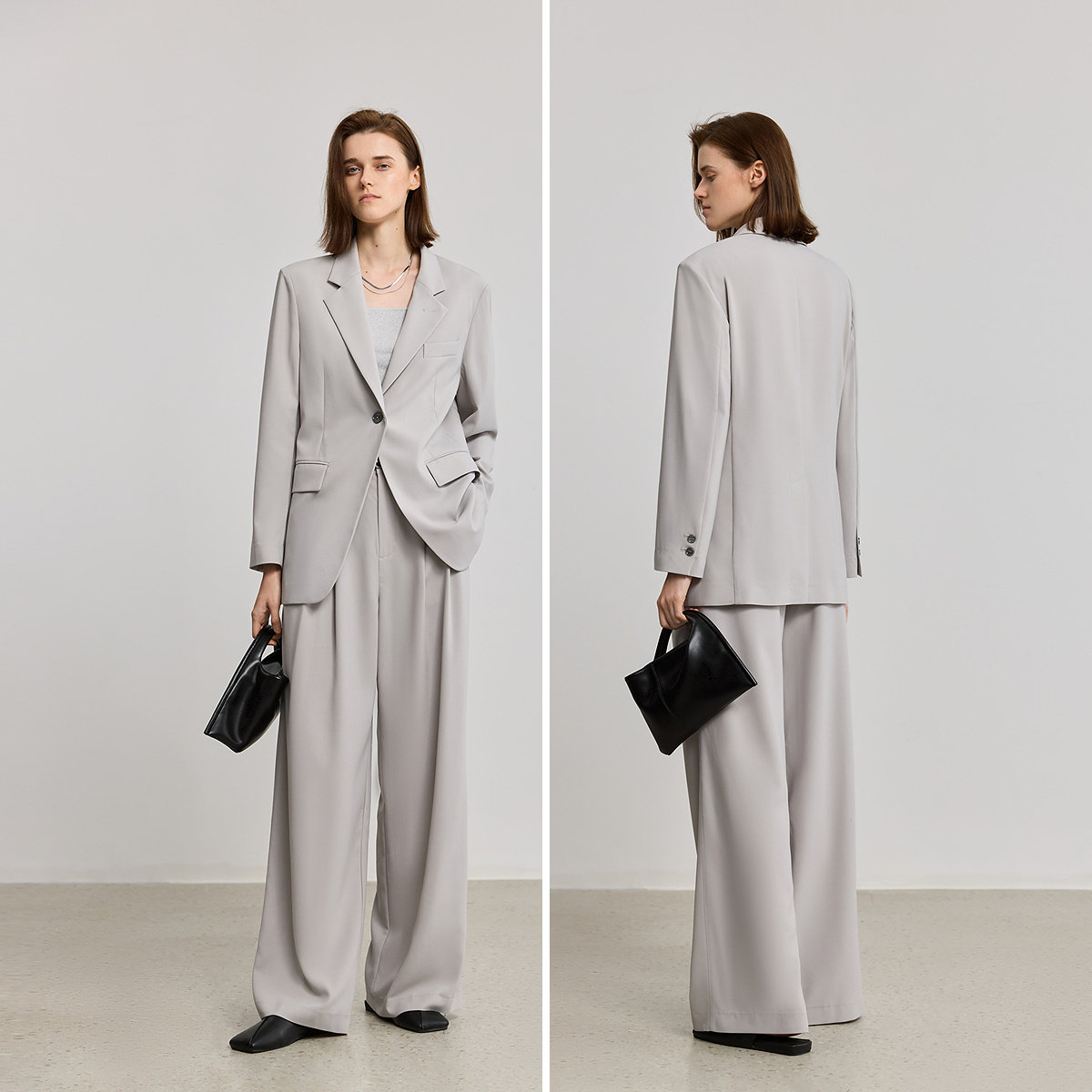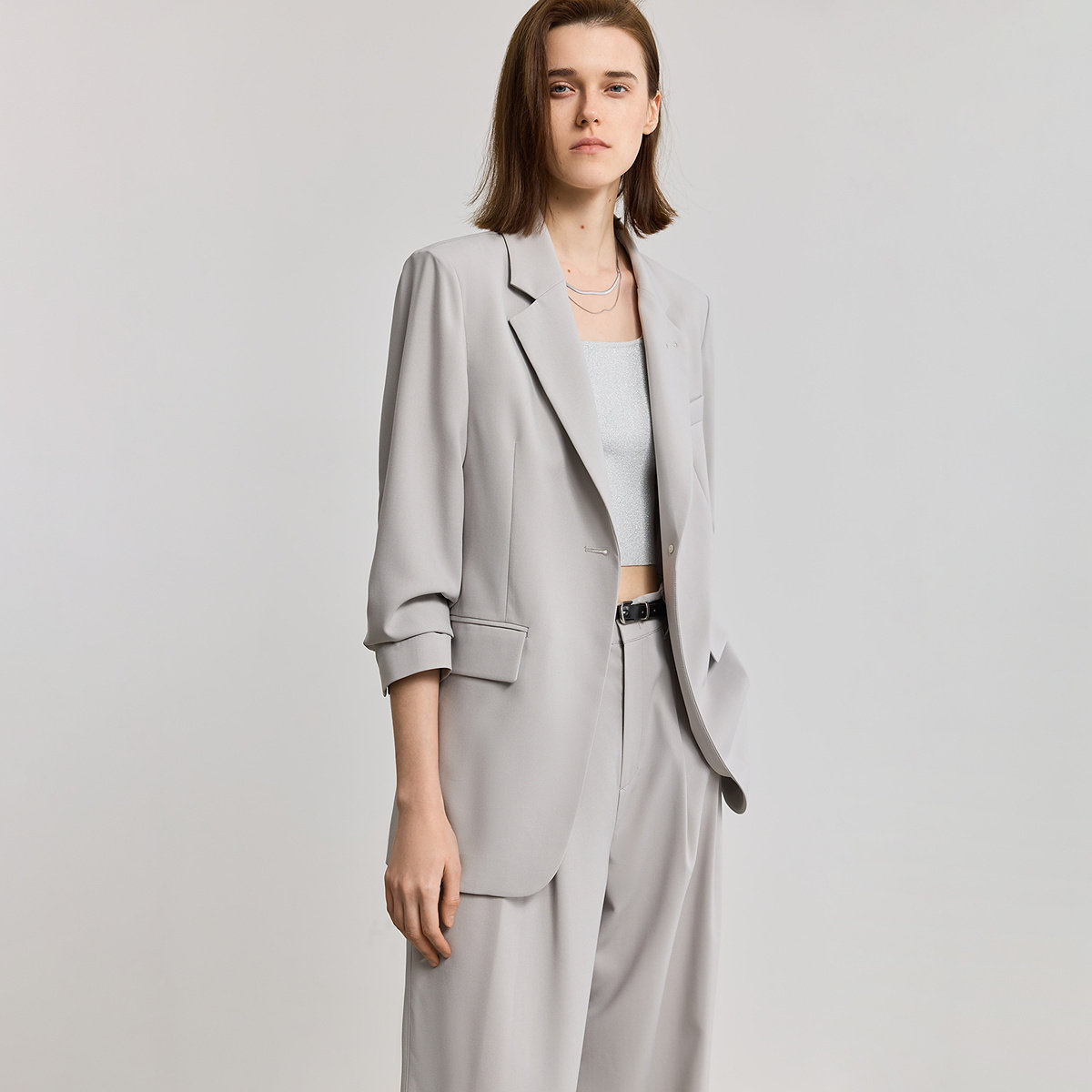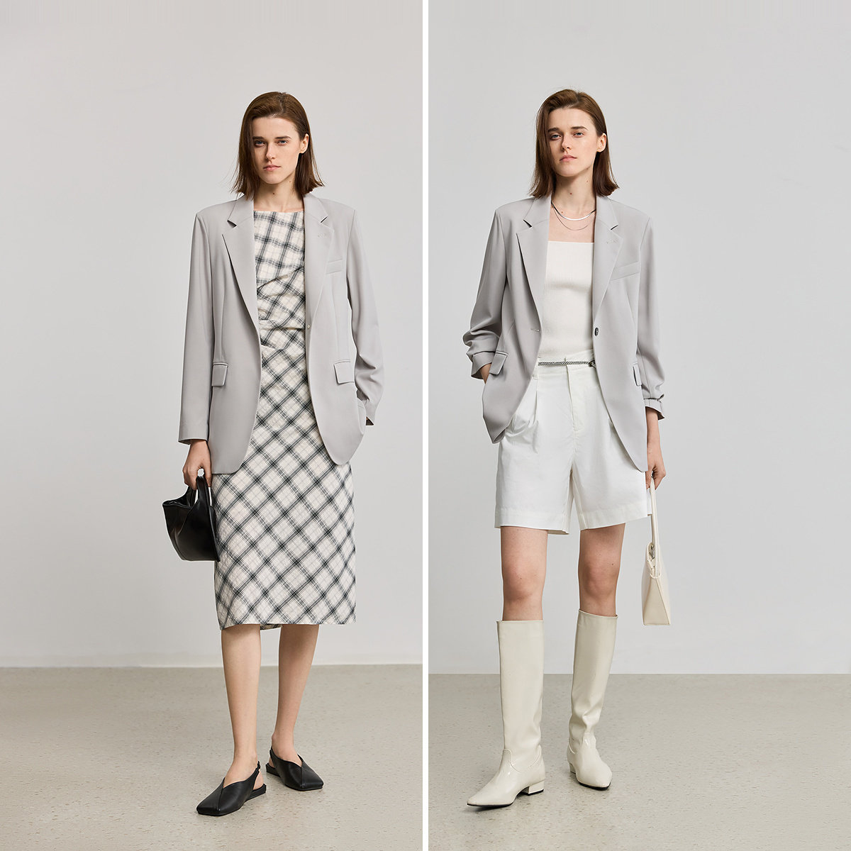 LILY2025新款女装格雷系一粒扣百搭职业通勤宽松休闲西装外套