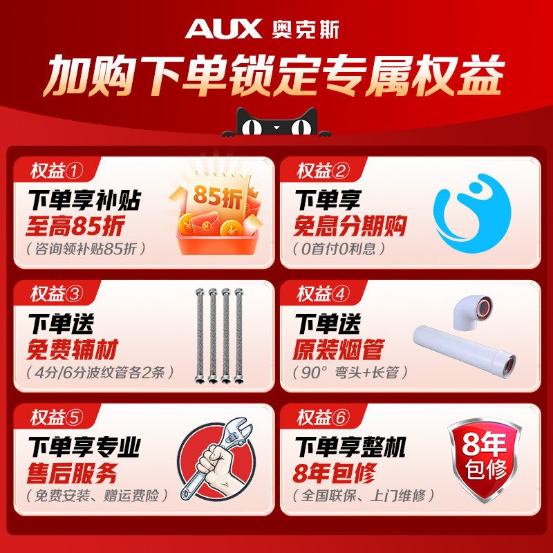 奥克斯燃气壁挂炉采暖热水两用天然气地暖锅炉家用采暖炉一级能效