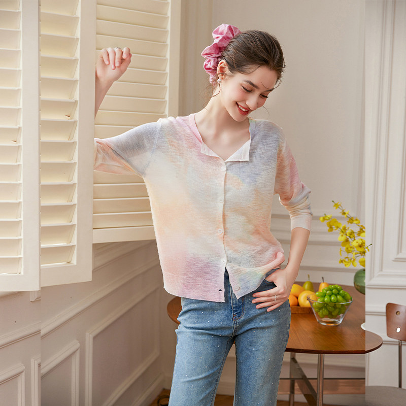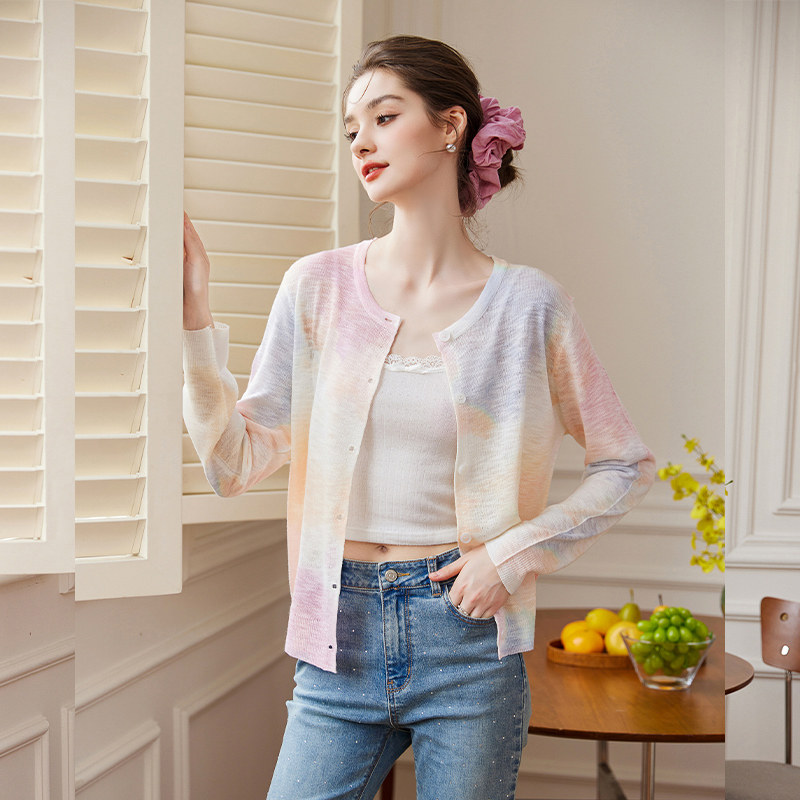 白鹿语 圆领印花针织开衫女 2026春秋休闲百搭宽松显瘦长袖上衣女