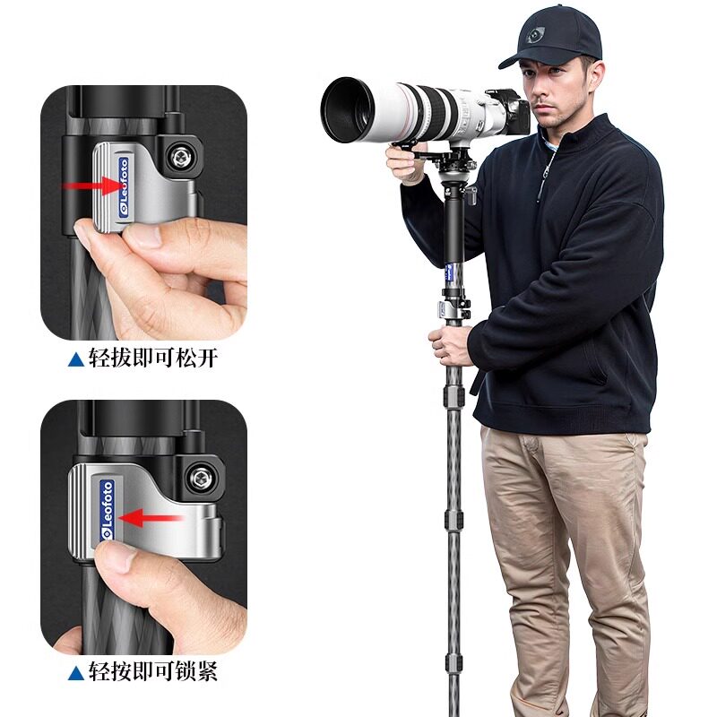 leofoto徕图MPC-326专业多功能板扣可快调微调碳纤维单独脚架打鸟