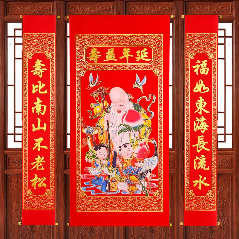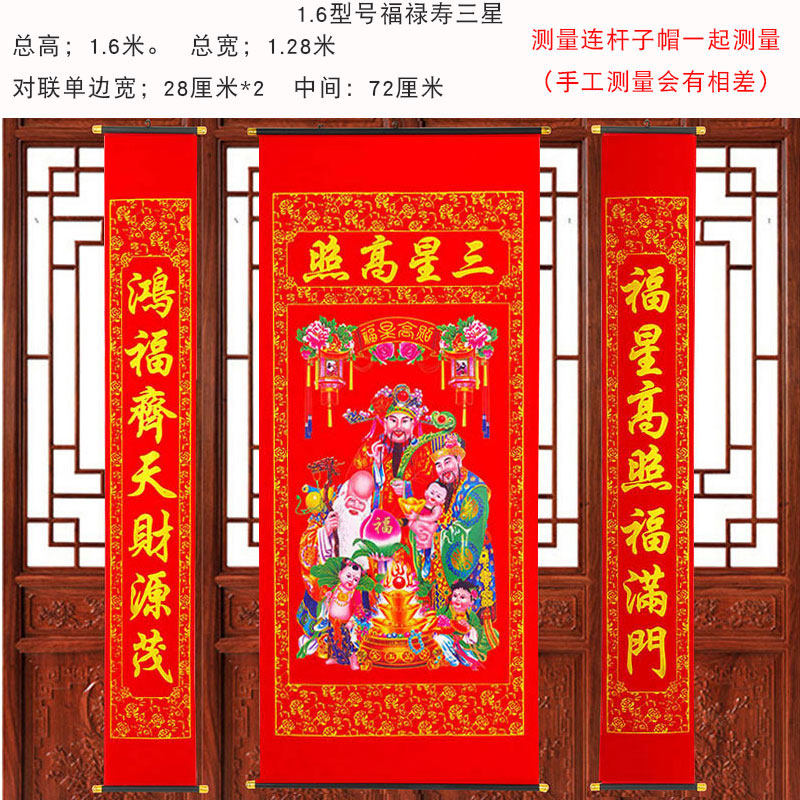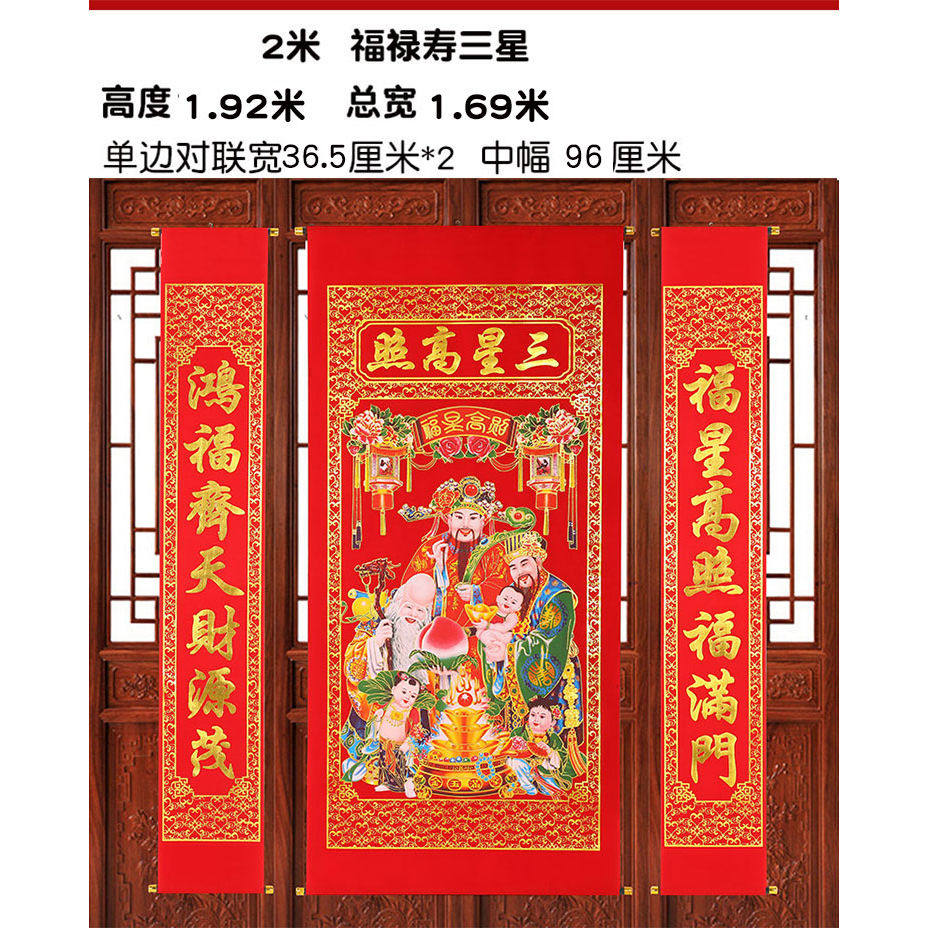 农村堂屋三星高照中堂画新年乔迁寿星挂画福禄寿福星高照客厅挂画